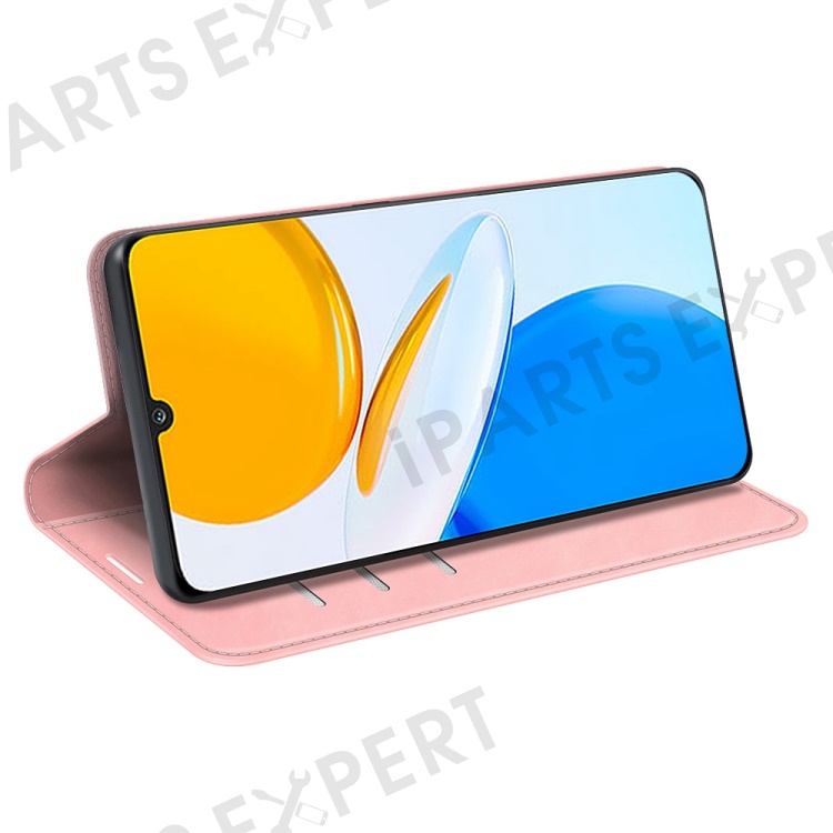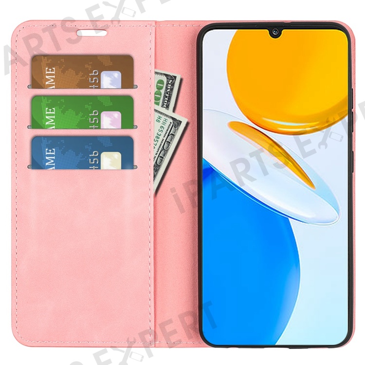 For Honor X7 Skin-touch Feeling PU Leather Cover Magnetic Auto-absorbed Phone Wallet Stand Case - Pink