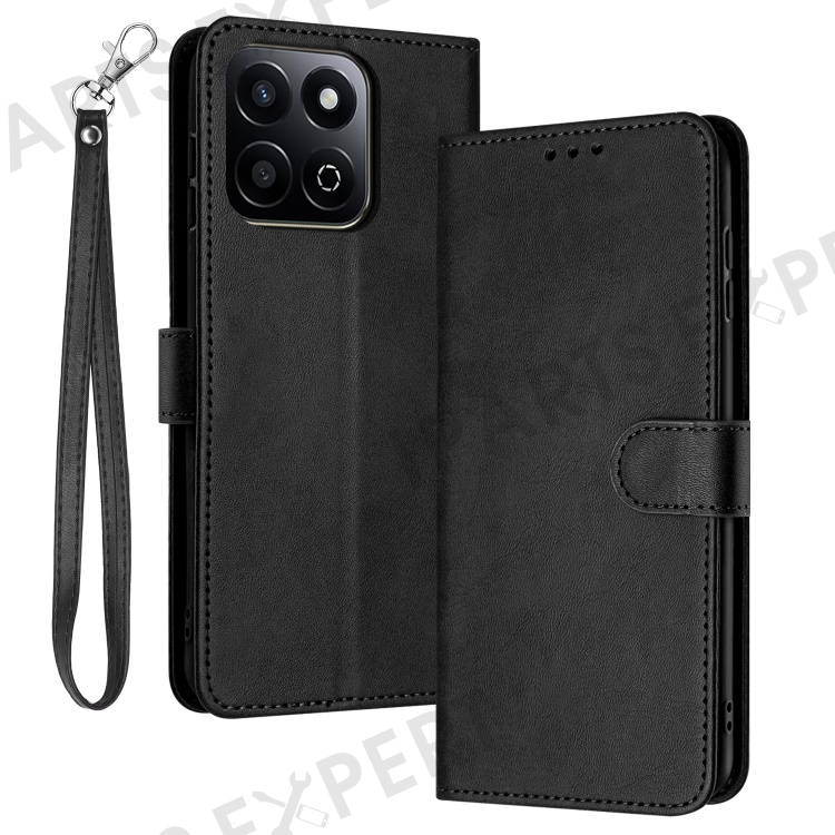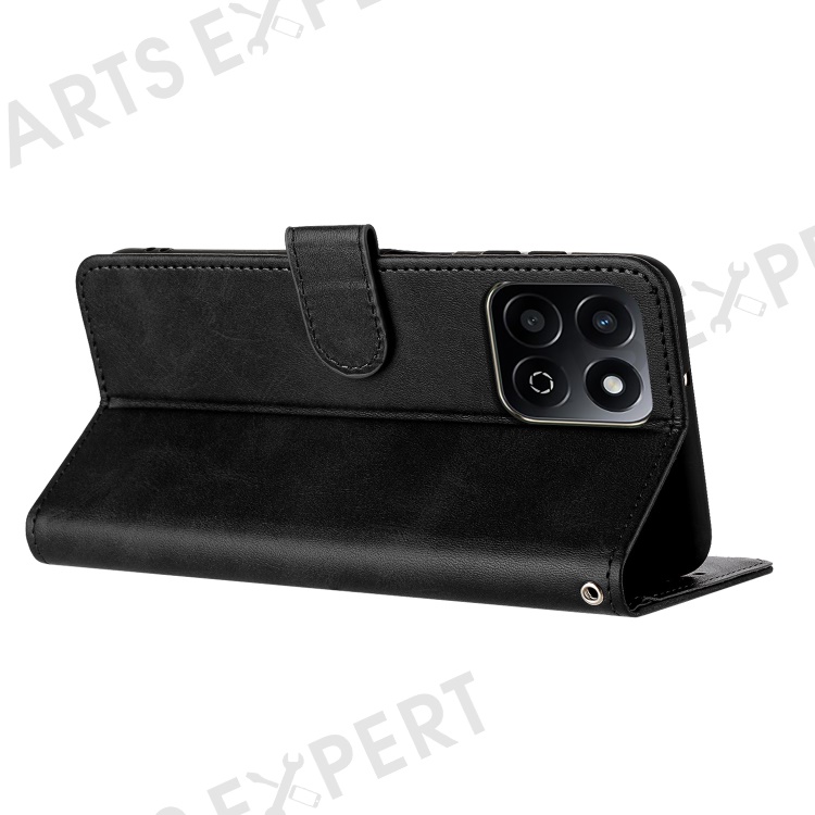 For Honor X7c 5G / X7c 4G / 200 Smart 5G / Play 60 Plus 5G / Play 9T Case Flip Stand PU Leather Wallet Phone Cover Calf Texture - Black