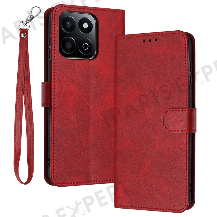 For Honor X7c 5G / X7c 4G / 200 Smart 5G / Play 60 Plus 5G / Play 9T Case Flip Stand PU Leather Wallet Phone Cover Calf Texture - Red