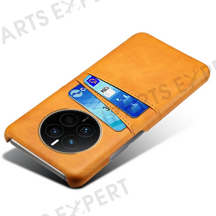 For Huawei Mate 50 4G Anti-scratch PU Leather+PC Hard Case Dual Card Slots Protective Phone Cover - Orange