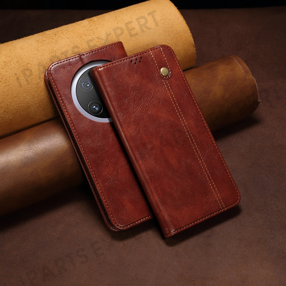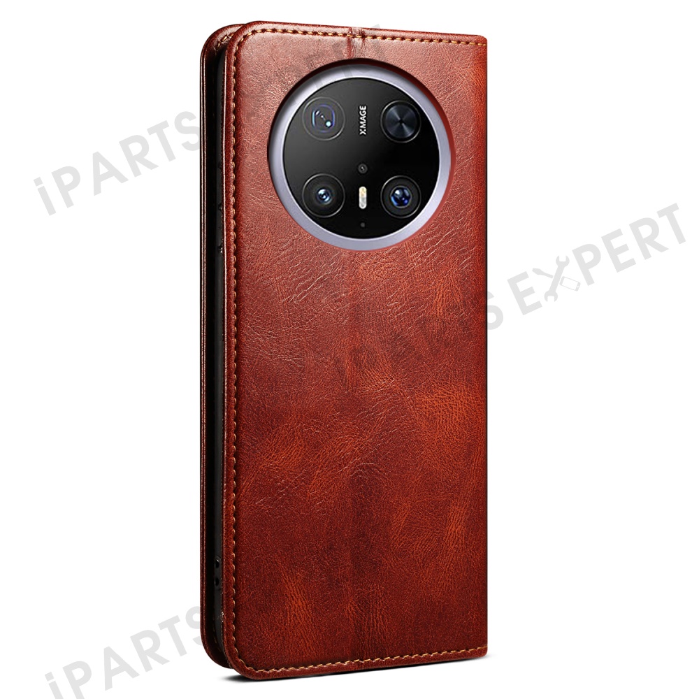 For Huawei Mate 70 Case Crazy Horse Texture Waxy Leather Wallet Stand Phone Cover - Brown