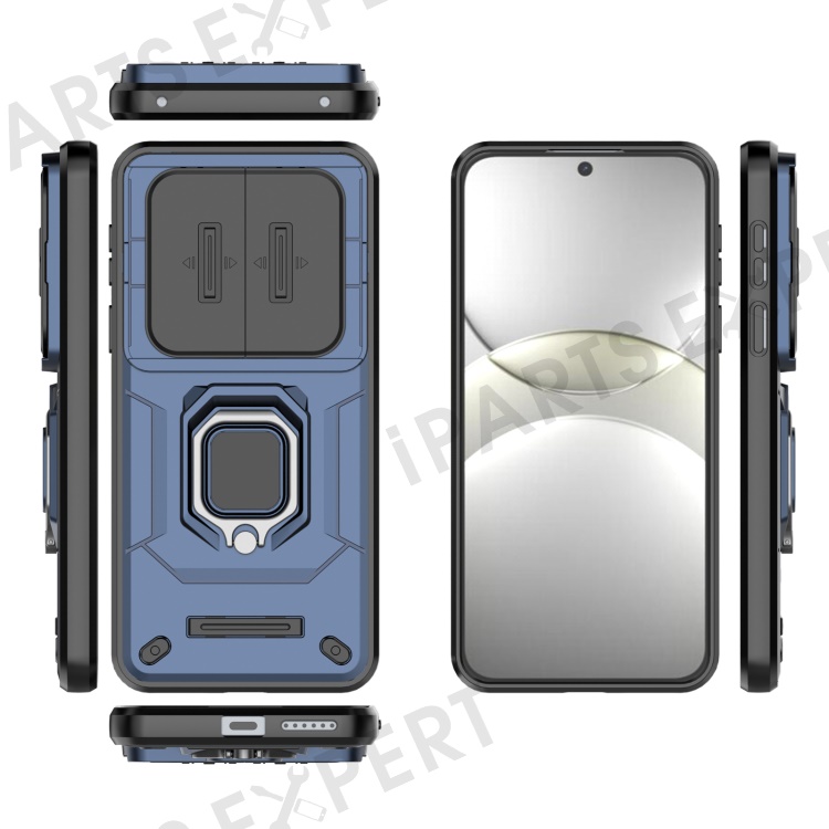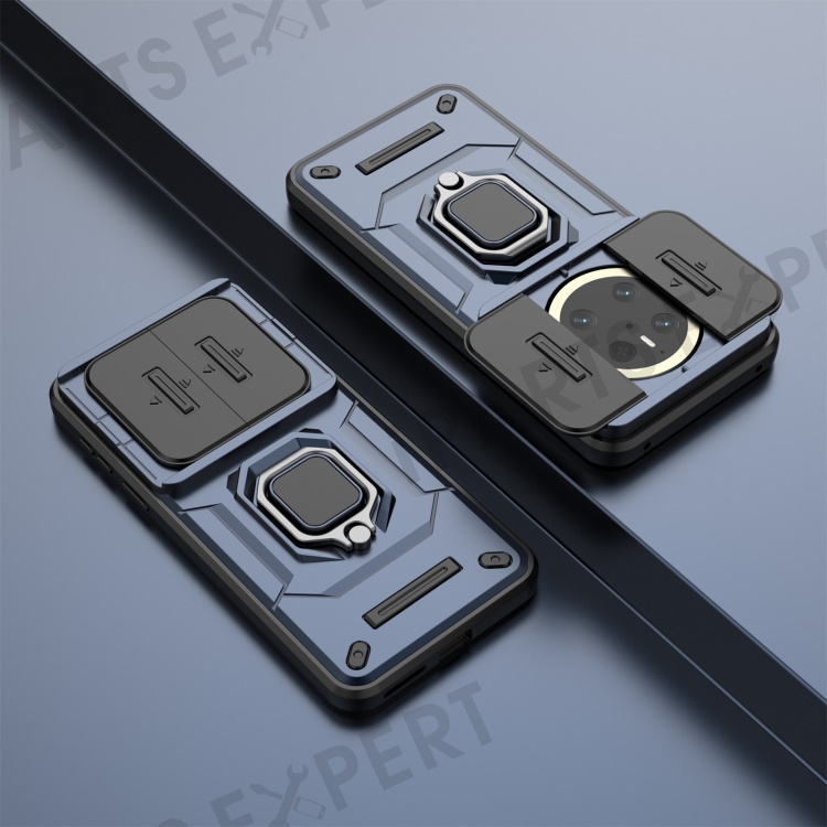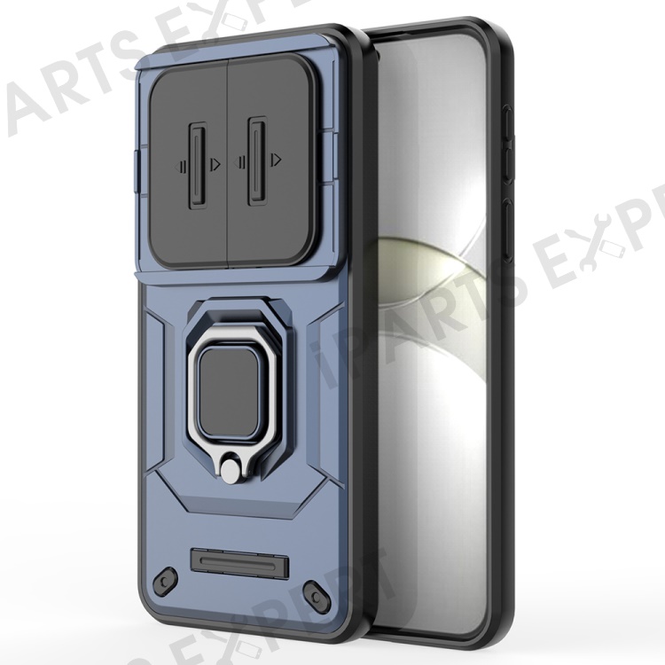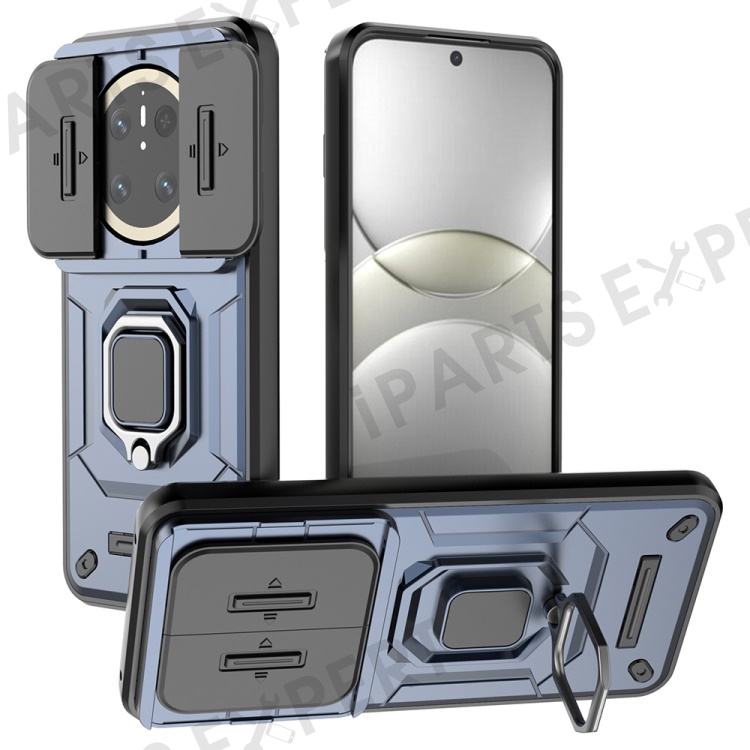 For Huawei Mate 70 Case PC+TPU Kickstand Phone Protector with Lens Cover - Blue