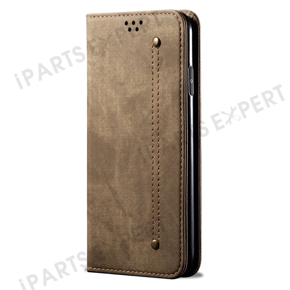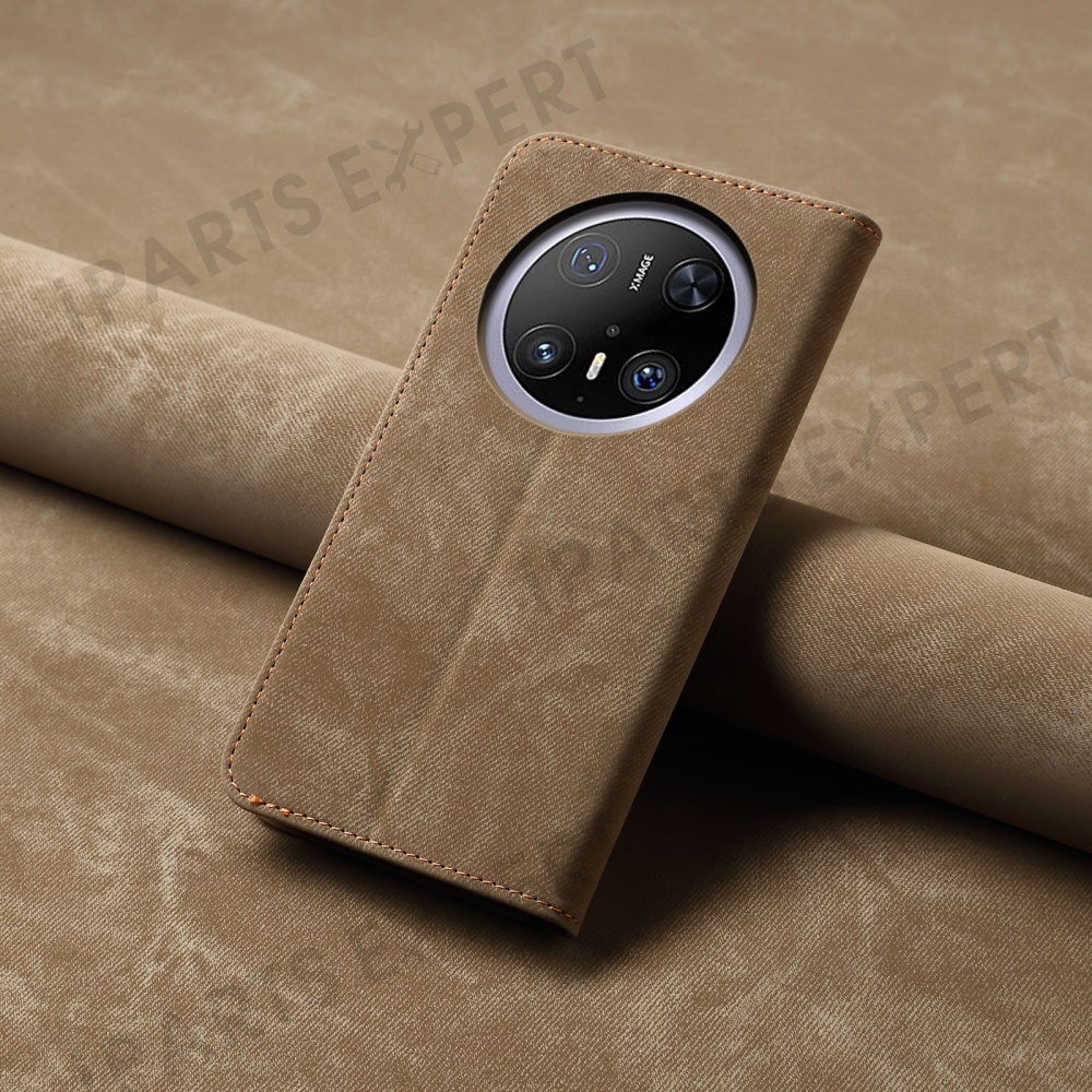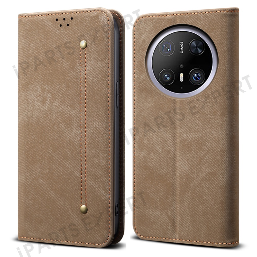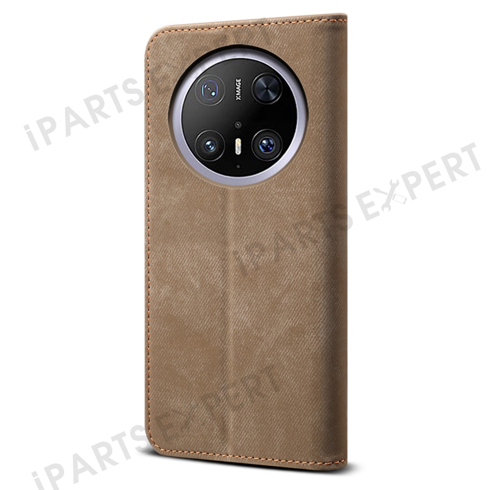 For Huawei Mate 70 Pro / Mate 70 Pro+ Case Jeans Cloth Texture Anti-Scratch Leather Stand Phone Cover - Khaki