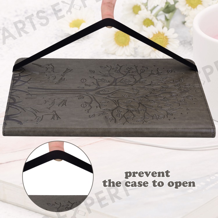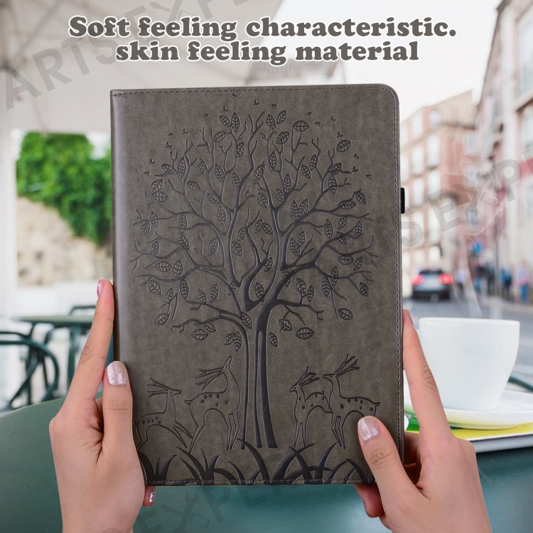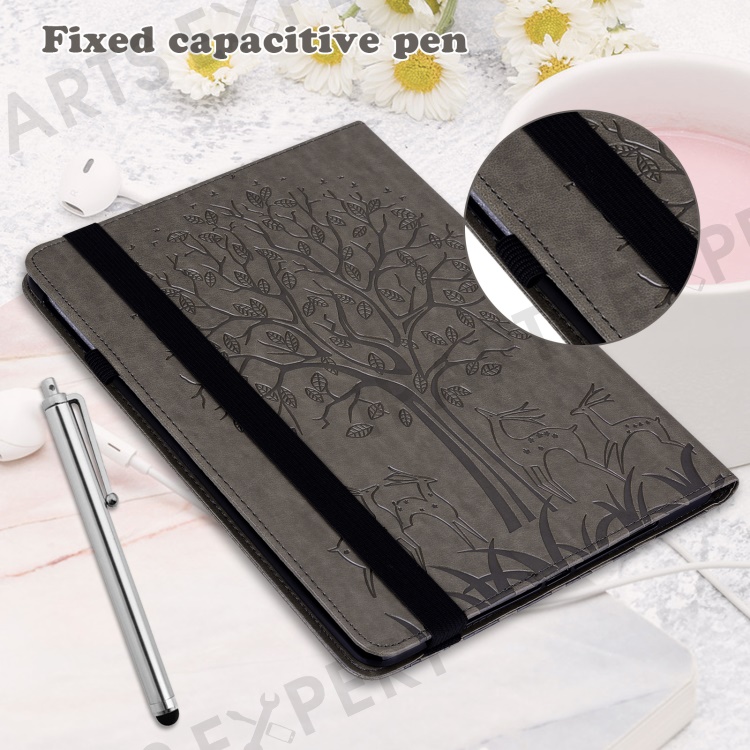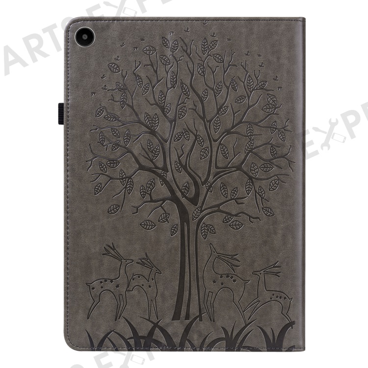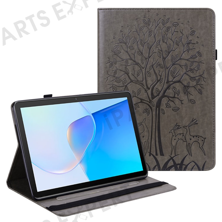 For Huawei MatePad SE 10.4-inch Shockproof Case Tree Deer Imprinted Stand Leather Cover with Card Slots - Grey