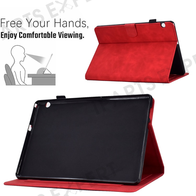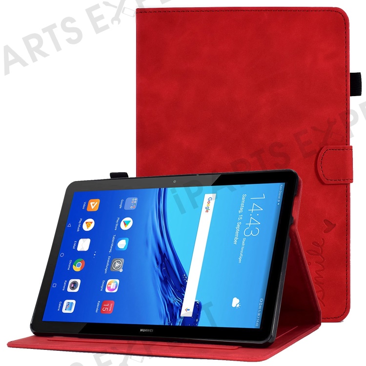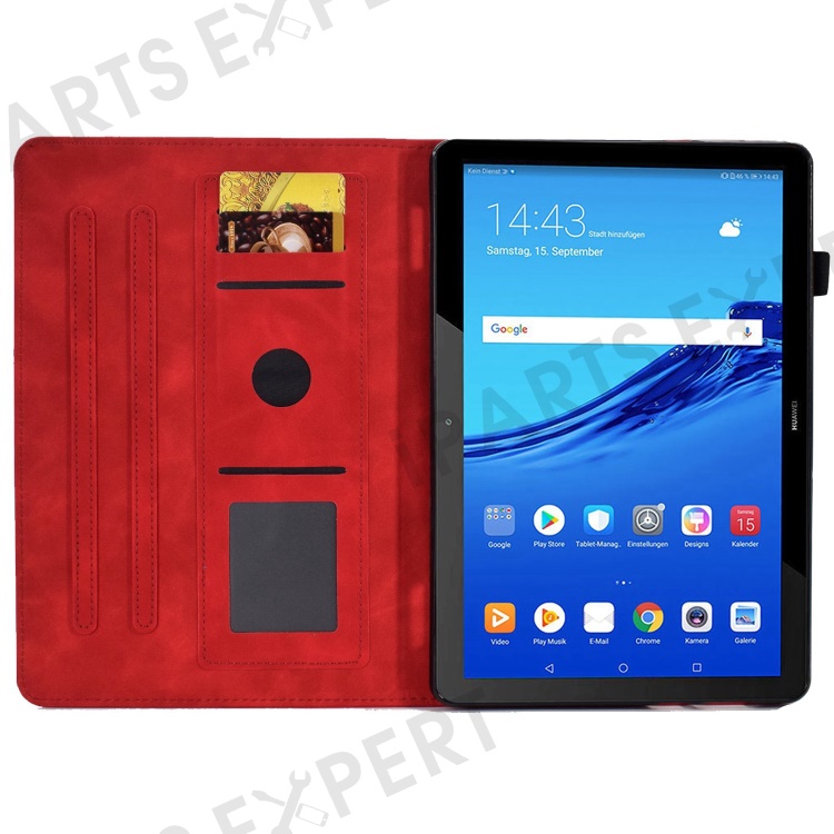 For Huawei MediaPad T5 10.1 Pattern Imprinted Smart Tablet Case PU Leather Card Slots Folio Stand Cover with Pencil Holder - Red
