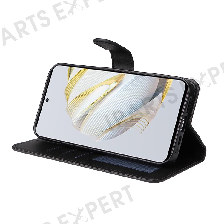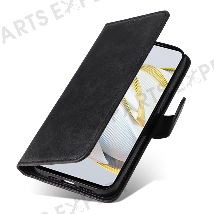 For Huawei nova 10 SE 4G Shockproof PU Leather Stand Case Calf Texture Folio Flip Phone Wallet Cover - Black
