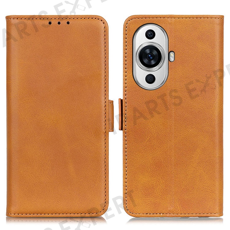 For Huawei nova 11 / nova 12s 4G / nova 12 Lite 4G Dustproof Cell Phone Cover Cowhide Texture PU Leather Wallet Stand Phone Case Shell - Yellow