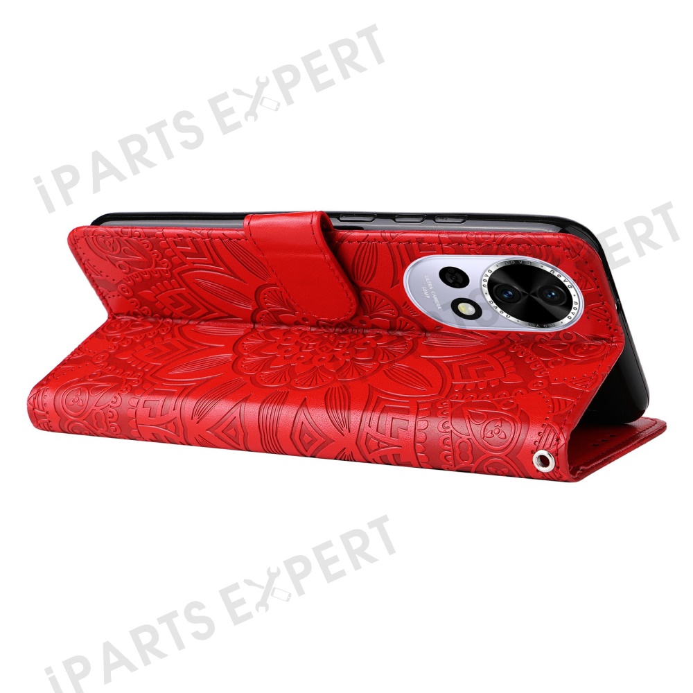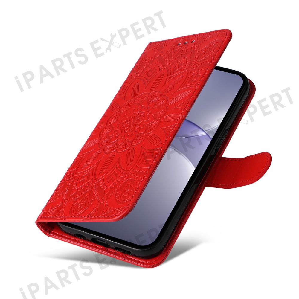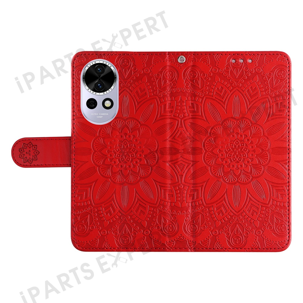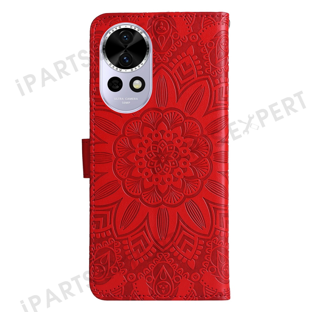 For Huawei nova 13 5G / nova 12 5G Case Sunflower Imprint Leather Wallet Phone Cover - Red