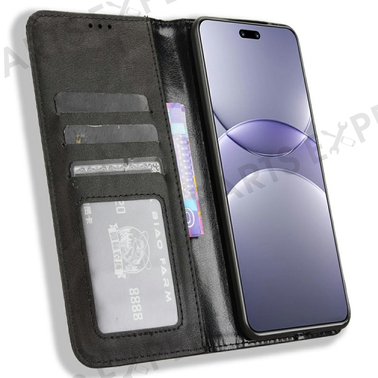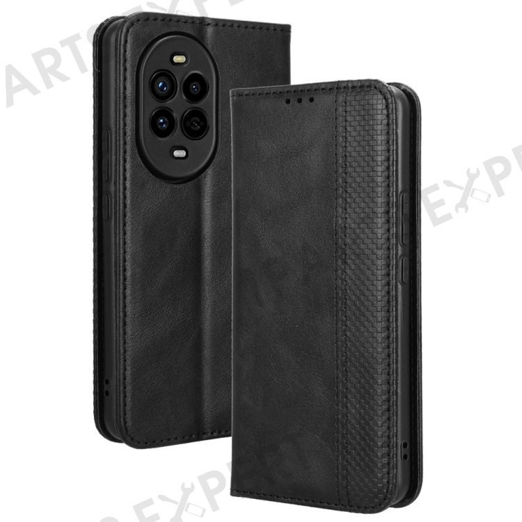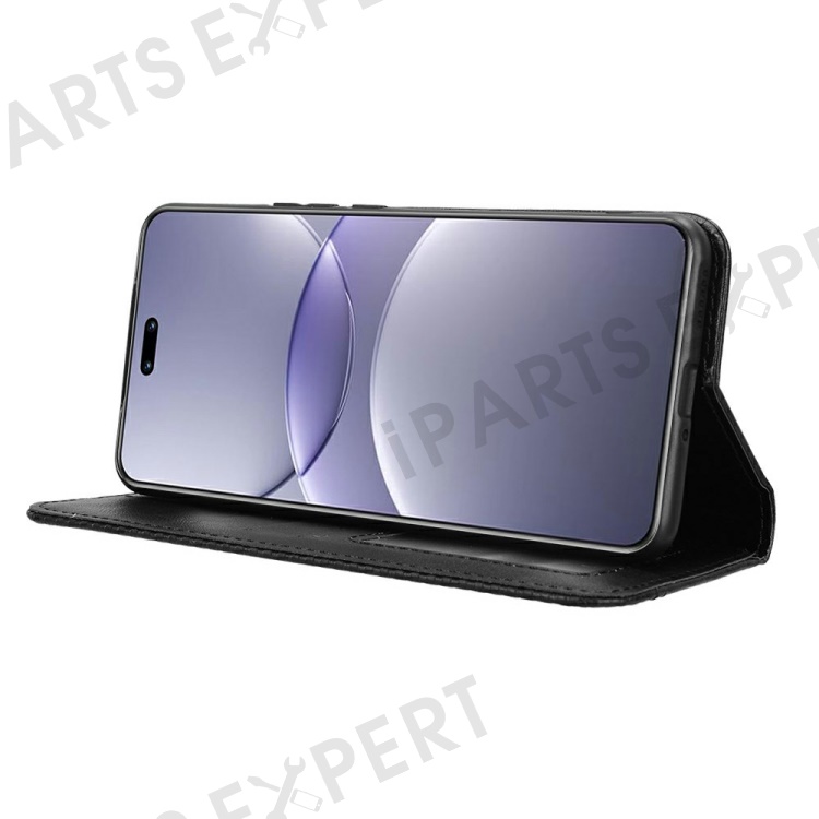 For Huawei nova 13 Pro 5G Leather Case Wallet Stand Retro Texture Phone Cover - Black