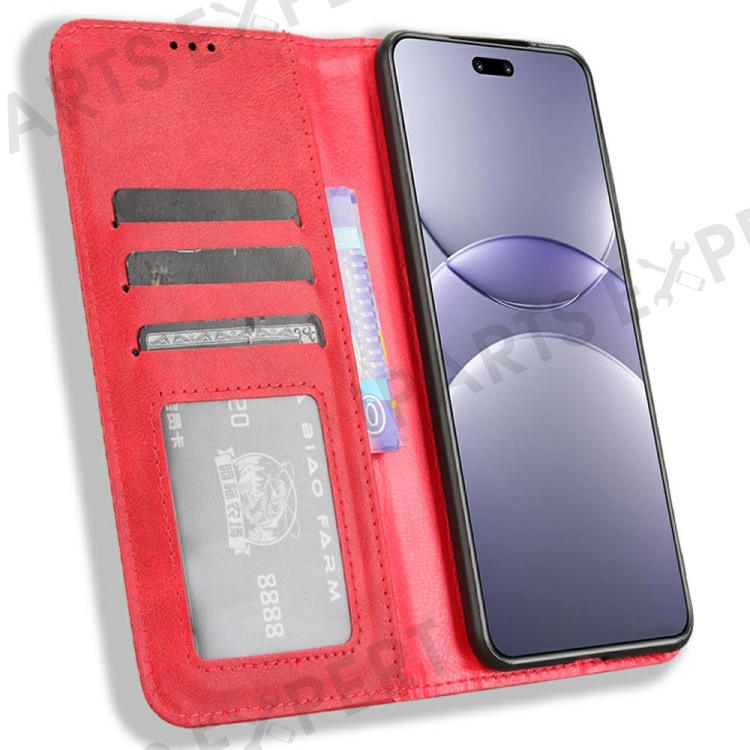 For Huawei nova 13 Pro 5G Leather Case Wallet Stand Retro Texture Phone Cover - Red