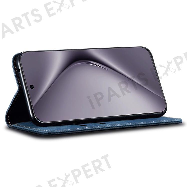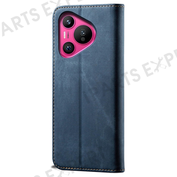 For Huawei Pura 70 Pro / Pura 70 Pro+ Case Leather Wallet Phone Cover Jeans Cloth Texture - Blue