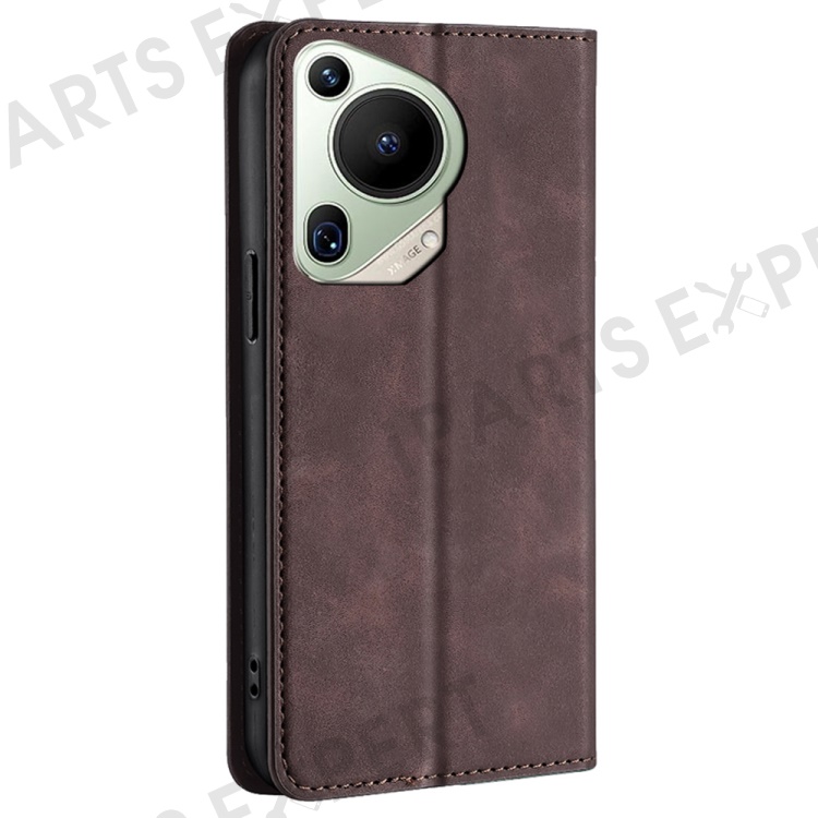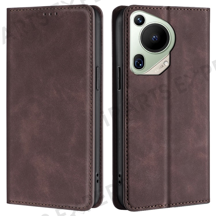For Huawei Pura 70 Ultra Case PU Leather Hidden Magnetic Adsorption Flip Phone Cover - Dark Brown