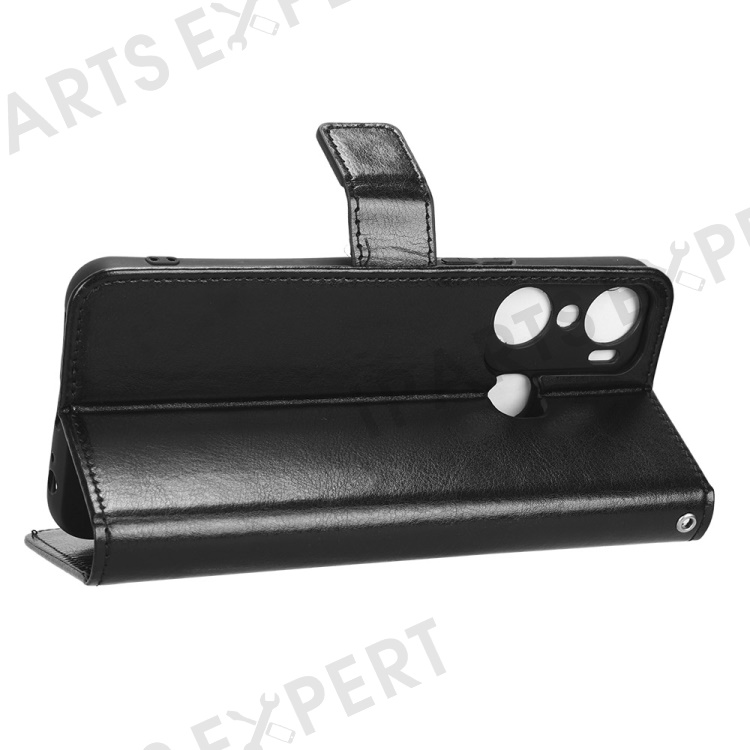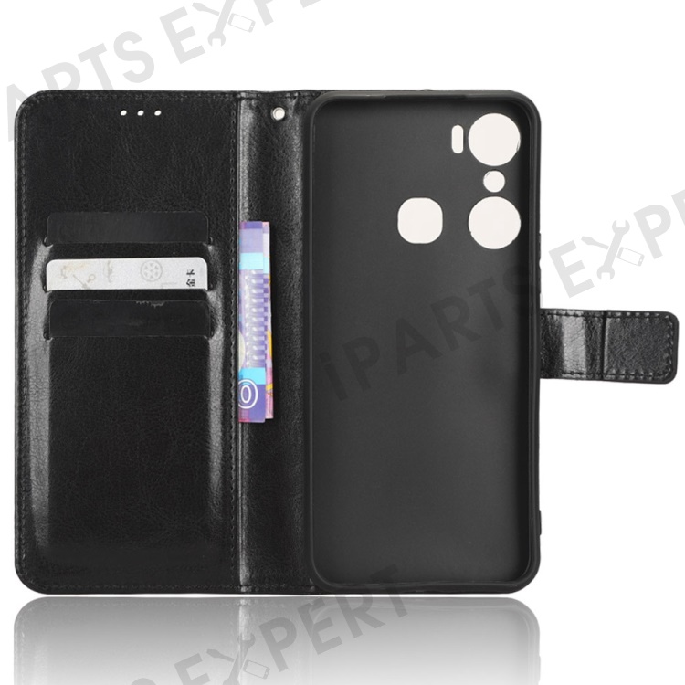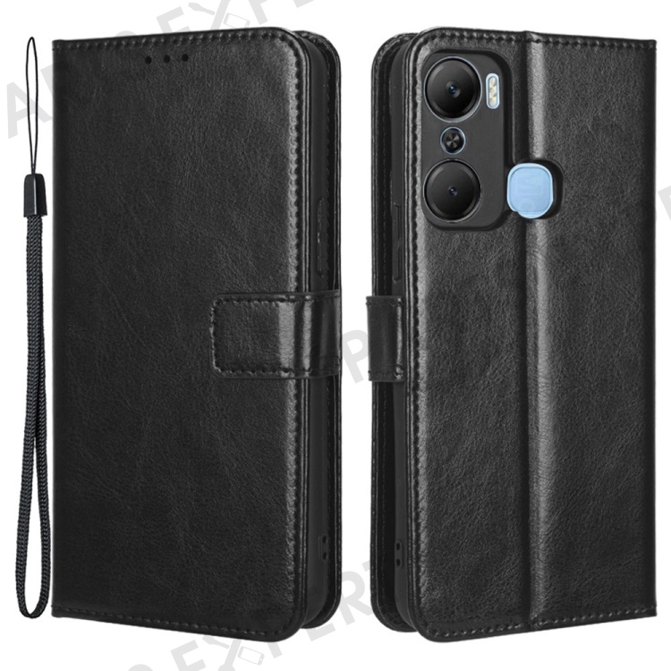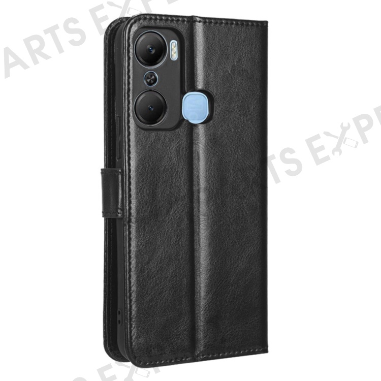 For Infinix Hot 12 Pro 4G X668C Crazy Horse Texture Wallet Case PU Leather Stand Phone Cover with Strap - Black