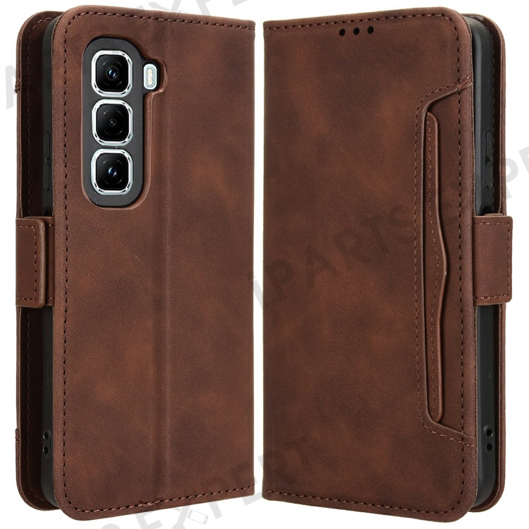 For Infinix Hot 50 Pro+ 4G X6880 Leather Case Phone Wallet Cover with Multiple Card Slots - Brown