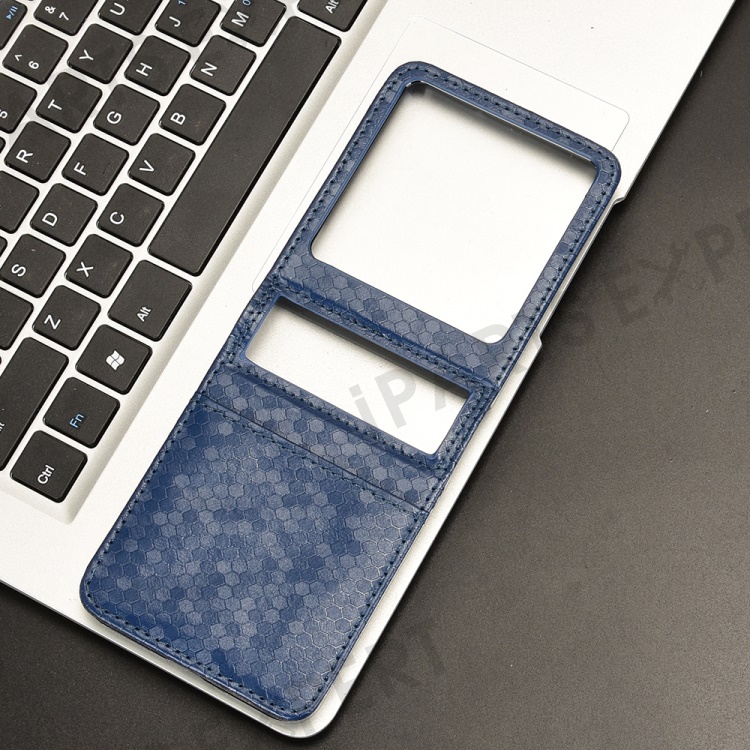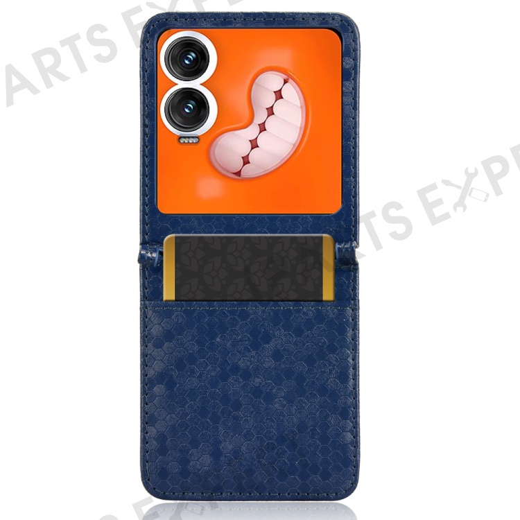 For Infinix Zero Flip 5G Case Dot Pattern Imprint PU Leather Coated PC Phone Cover with Card Holder - Dark Blue