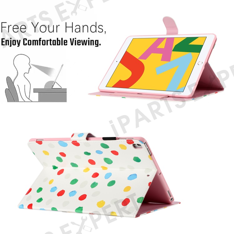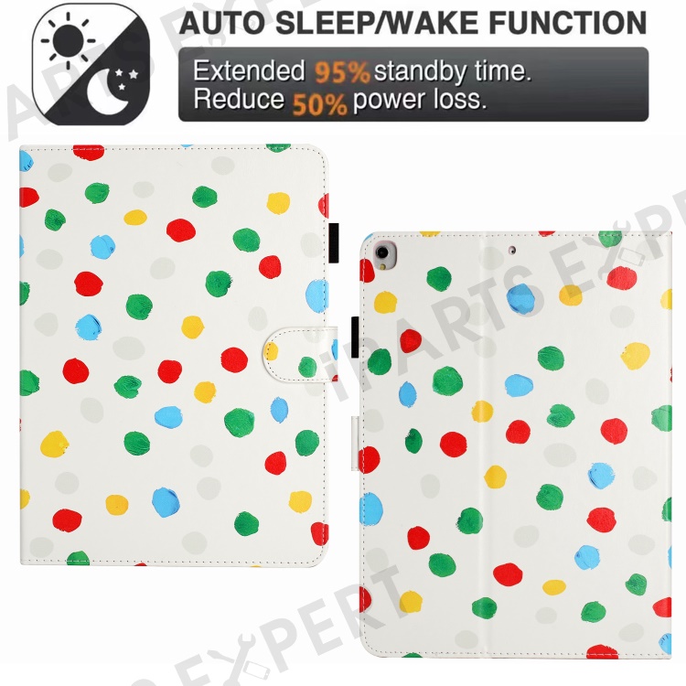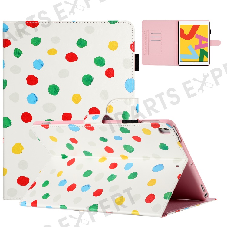 For iPad 10.2 (2021) / (2019) / (2020) / iPad Pro 10.5-inch (2017) PU Leather Case Dot Printing Anti-Drop Tablet Cover - White / Colorful Dot