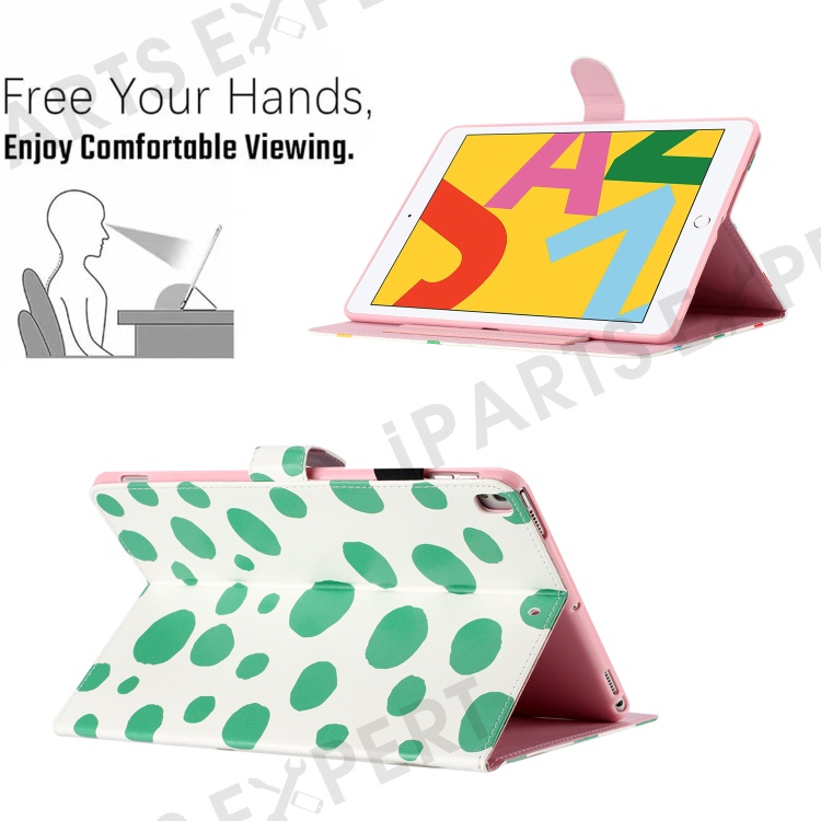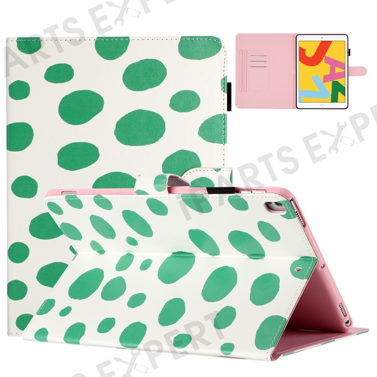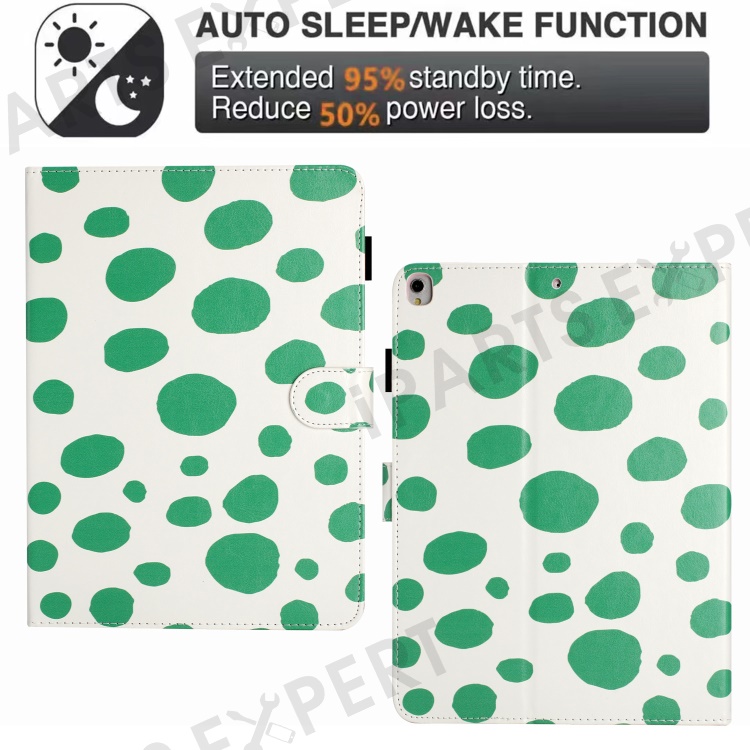 For iPad 10.2 (2021) / (2019) / (2020) / iPad Pro 10.5-inch (2017) PU Leather Case Dot Printing Anti-Drop Tablet Cover - White / Green Dot