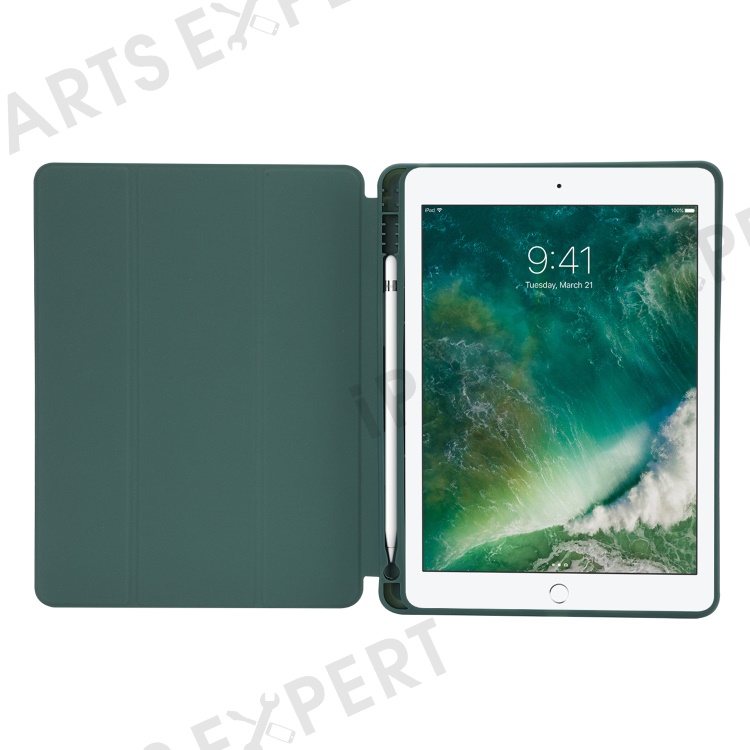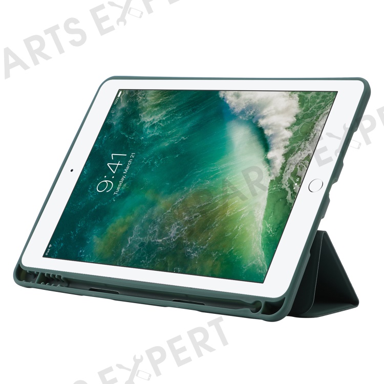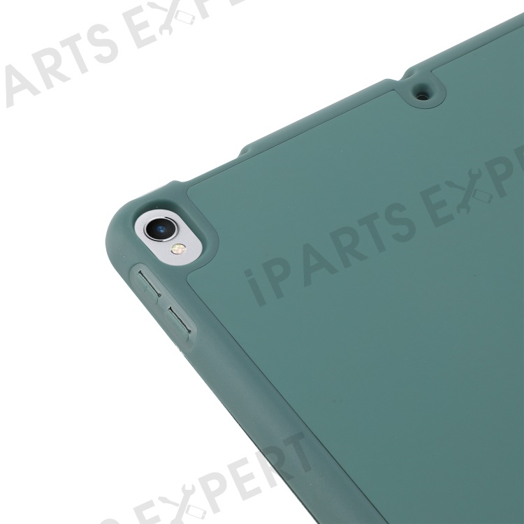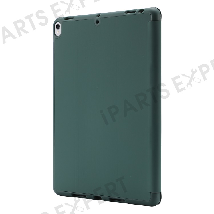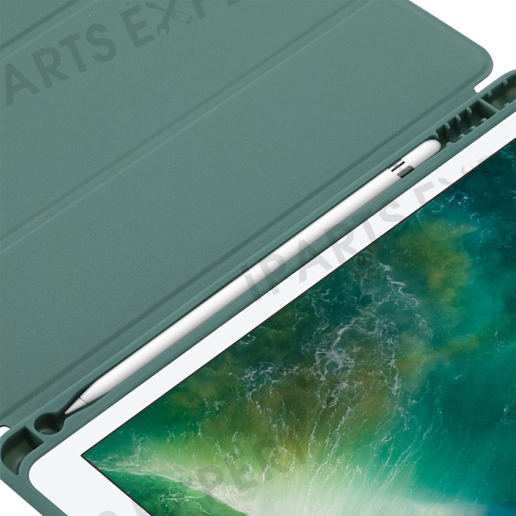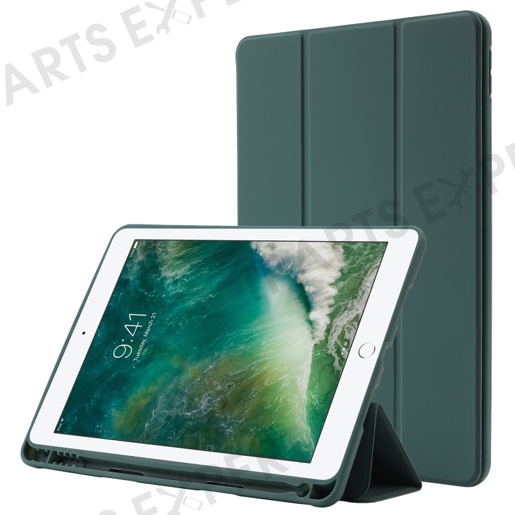 For iPad 10.2 (2021) / (2020) / (2019) Skin-touch Feeling PU Leather + TPU Tri-fold Stand Cover Anti-drop Tablet Case with Pen Slot - Blackish Green