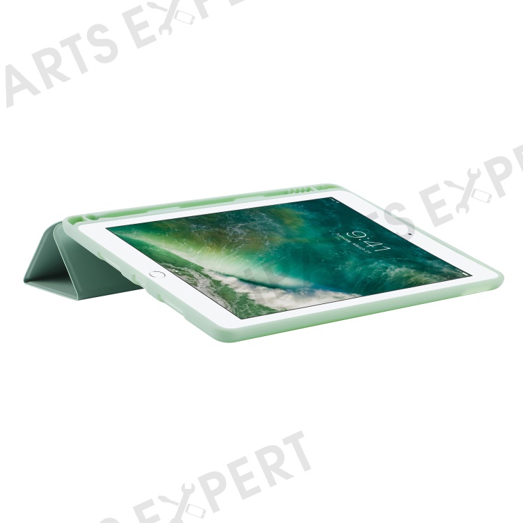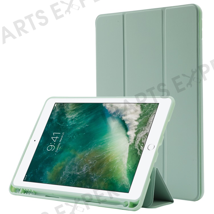 For iPad 10.2 (2021) / (2020) / (2019) Skin-touch Feeling PU Leather + TPU Tri-fold Stand Cover Anti-drop Tablet Case with Pen Slot - Green