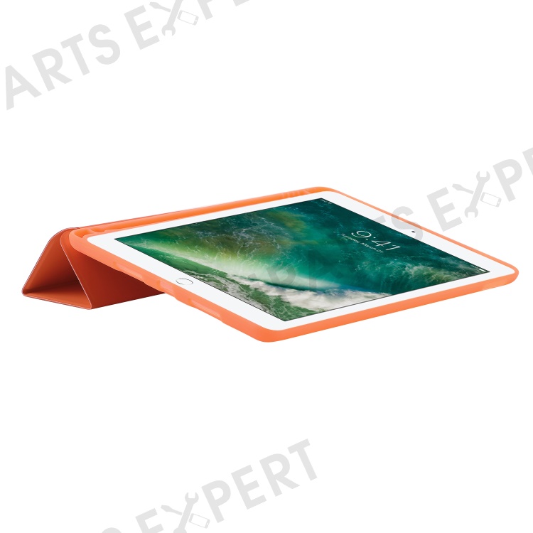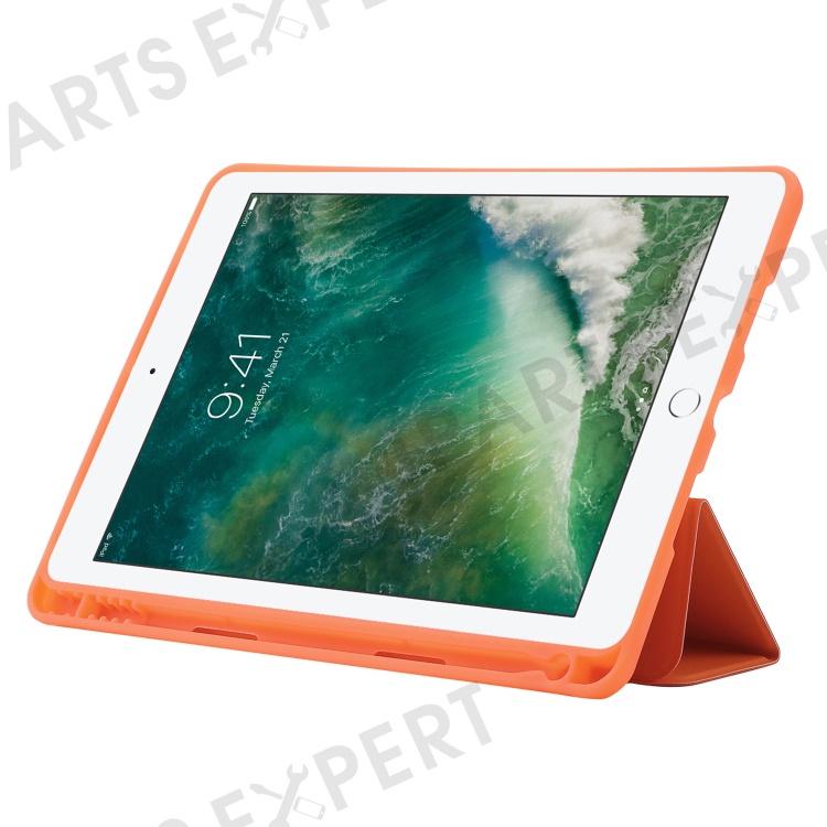 For iPad 10.2 (2021) / (2020) / (2019) Skin-touch Feeling PU Leather + TPU Tri-fold Stand Cover Anti-drop Tablet Case with Pen Slot - Orange