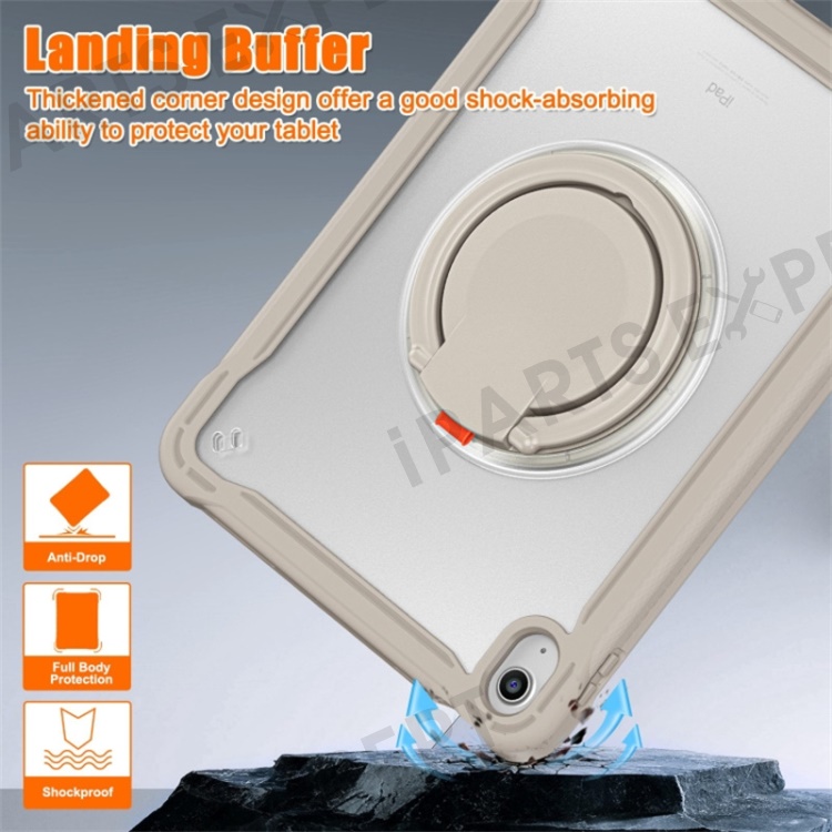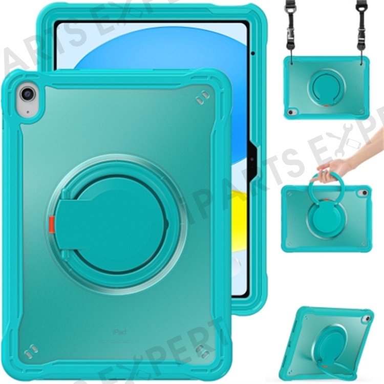 For iPad (2025) / 10.9 (2022) 360-Degree Rotating Kickstand PC+TPU Cover Shockproof Portable Tablet Case with Shoulder Strap - Baby Blue