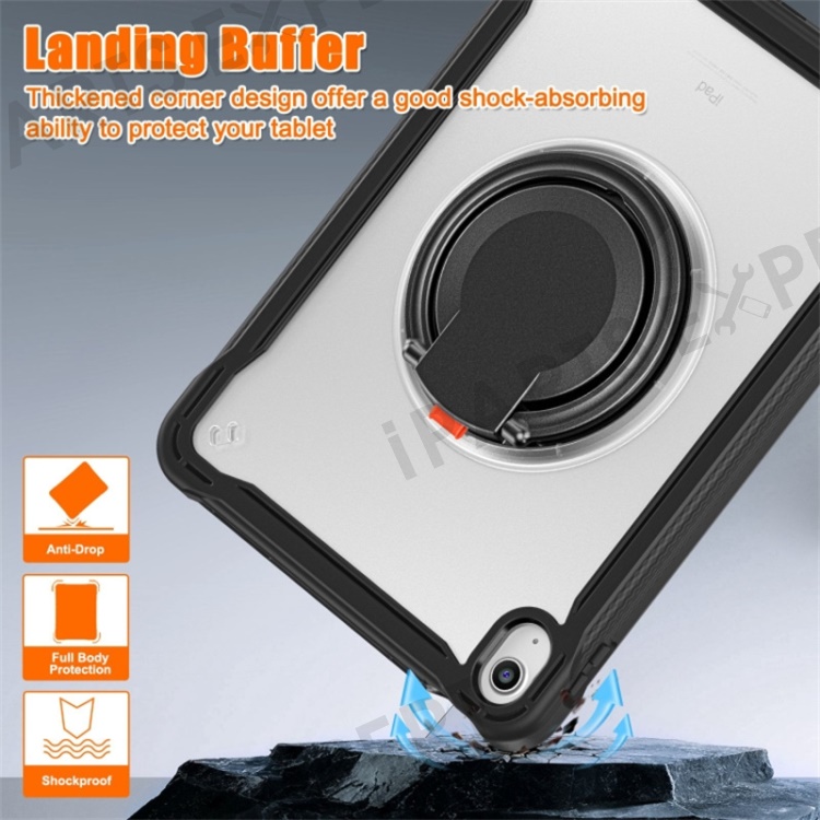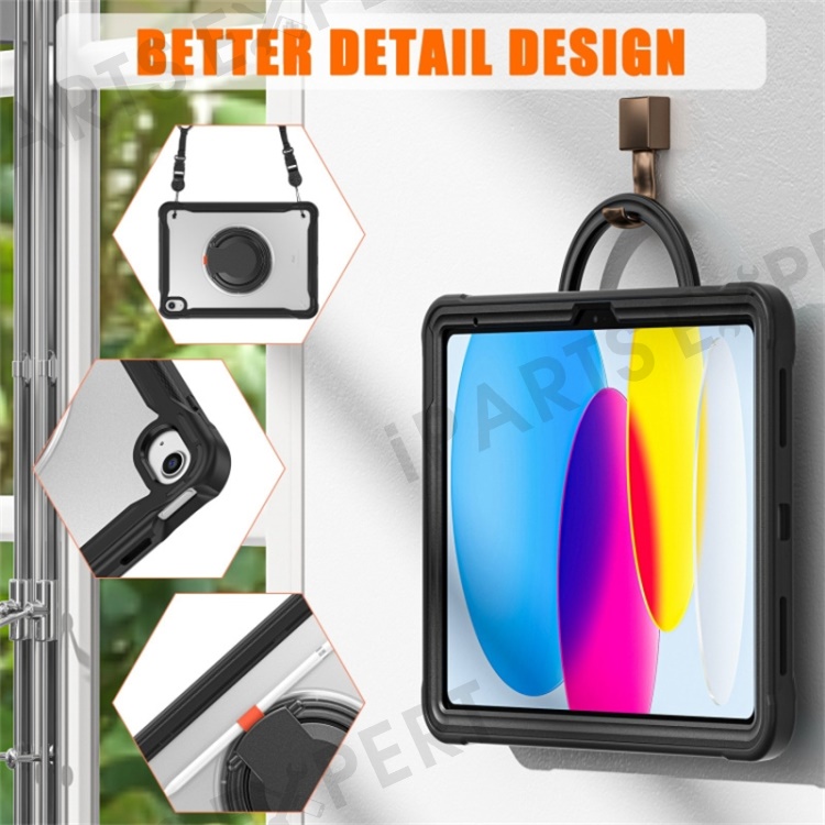 For iPad (2025) / 10.9 (2022) 360-Degree Rotating Kickstand PC+TPU Cover Shockproof Portable Tablet Case with Shoulder Strap - Black
