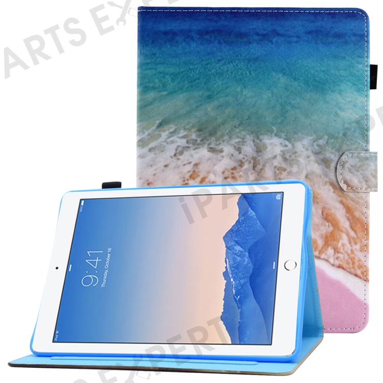 For iPad Air (2013) / Air 2 / iPad 9.7-inch (2017) / (2018) PU Leather Tablet Case Stitching Pattern Printing Stand Cover with Card Holder - Ocean