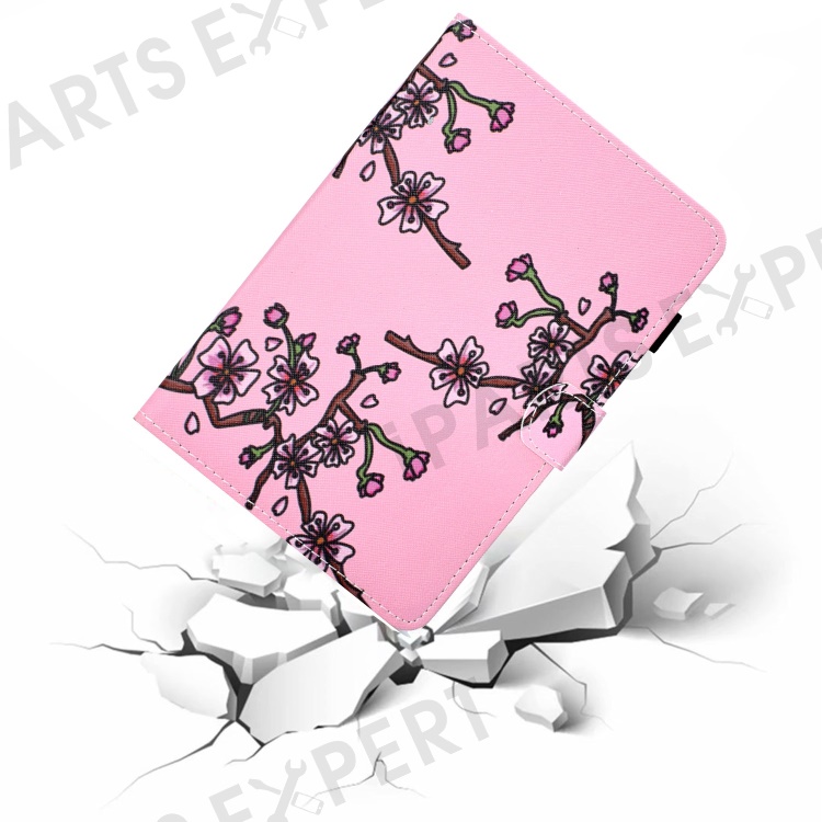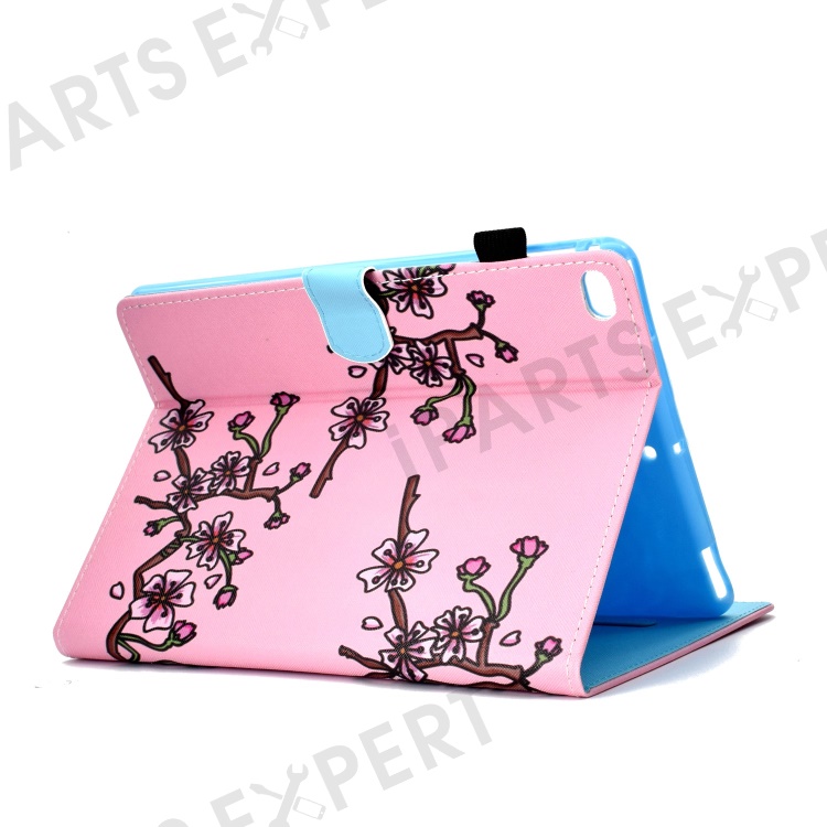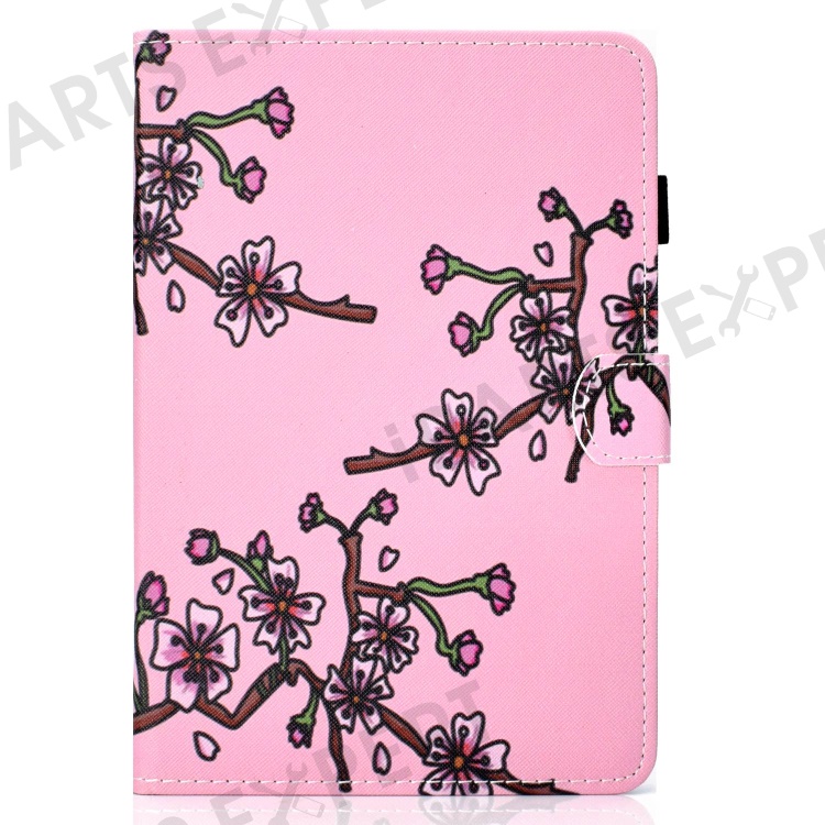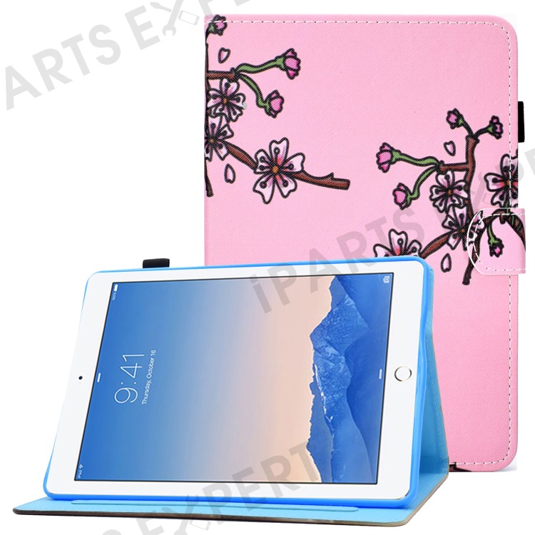 For iPad Air (2013) / Air 2 / iPad 9.7-inch (2017) / (2018) PU Leather Tablet Case Stitching Pattern Printing Stand Cover with Card Holder - Pink Plum Blossom