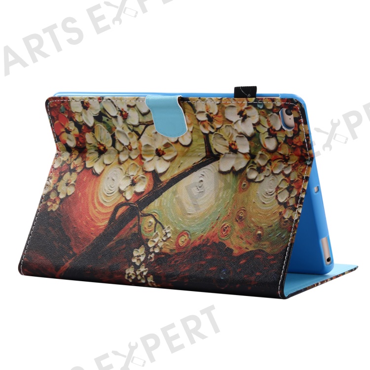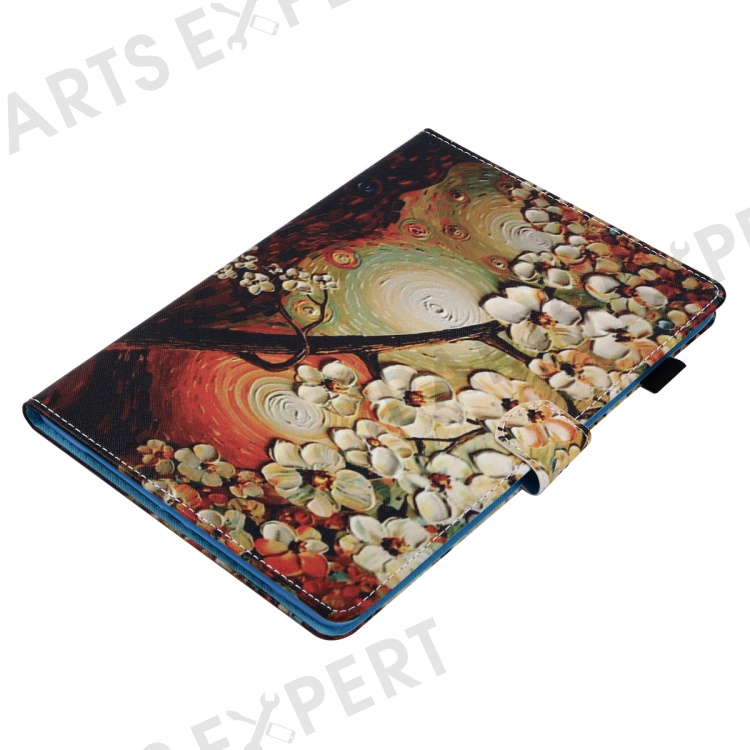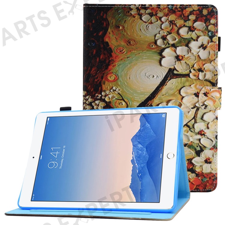 For iPad Air (2013) / Air 2 / iPad 9.7-inch (2017) / (2018) PU Leather Tablet Case Stitching Pattern Printing Stand Cover with Card Holder - Plum Blossom
