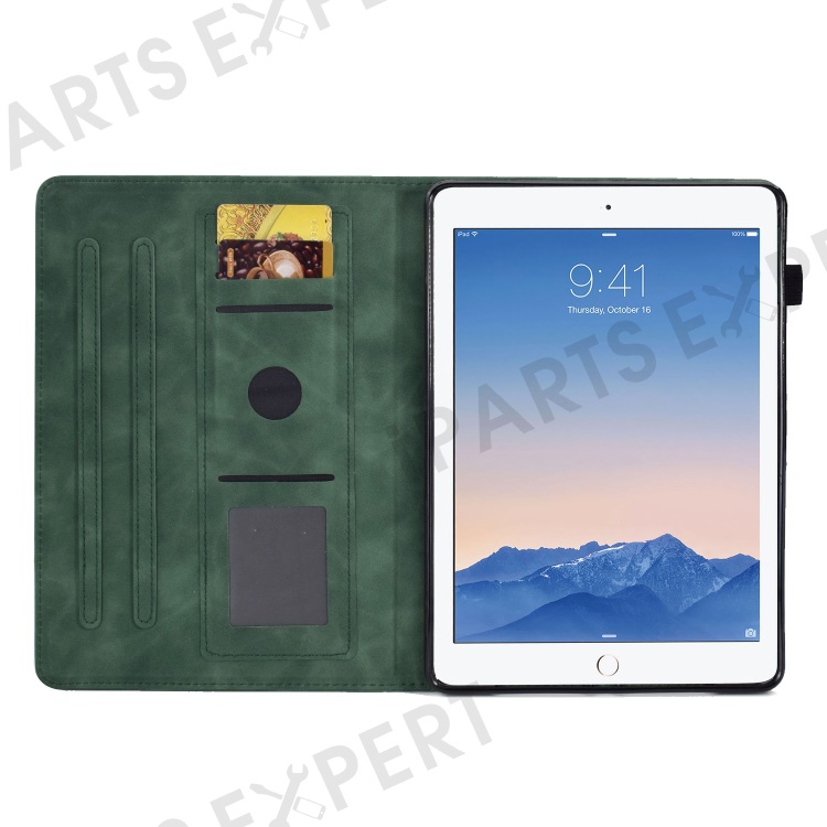 For iPad Air (2013) / Air 2 / iPad 9.7-inch (2017) / (2018) Solid Color Shockproof Case Anti-Fall Leather Folio Flip Cover Pattern Imprinted Tablet Stand Case with Card Slots - Green