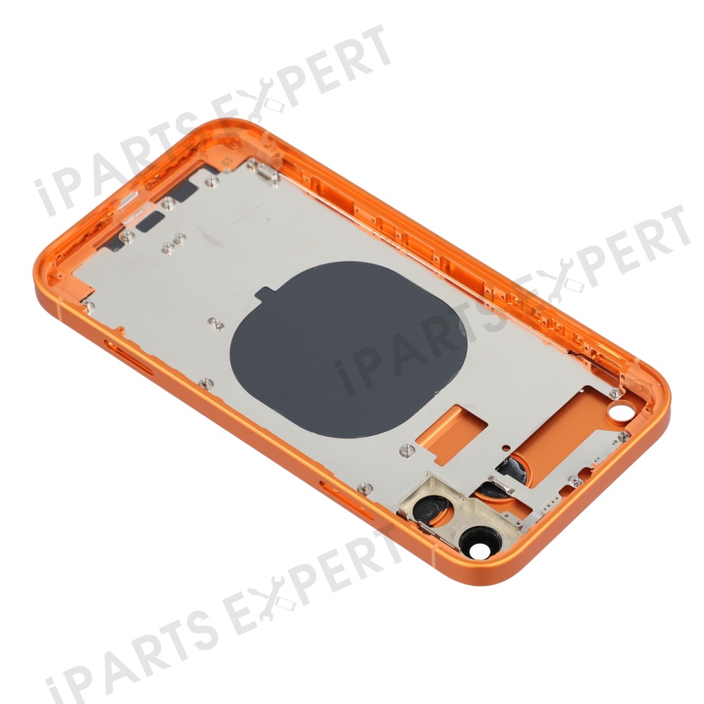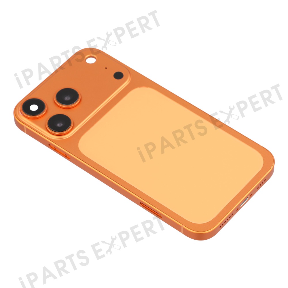 For iPhone 11 Back Cover Transform to 17 Pro Battery Housing Cover with Side Keys + Card Tray + Power + Volume Flex Cable - Orange