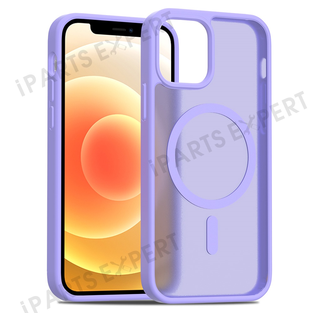 For iPhone 12 Pro / 12 Case Compatible with MagSafe TPU Frame Acrylic Back Phone Cover Skin Touch - Purple