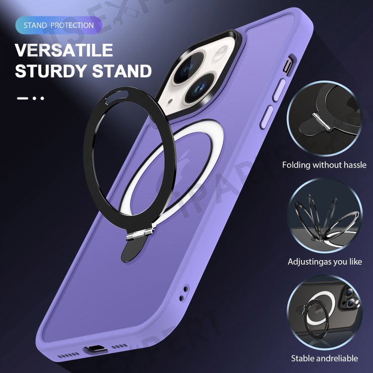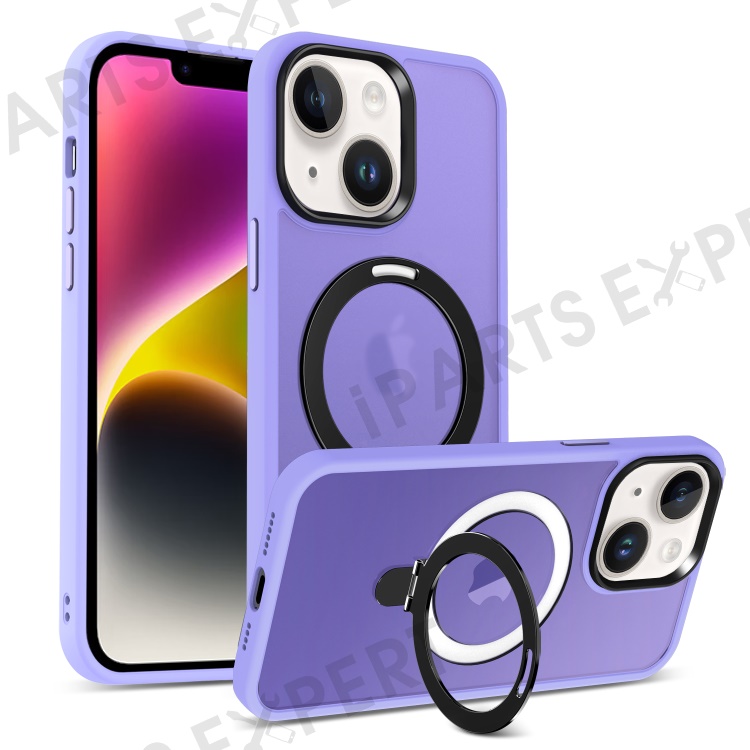 For iPhone 13 / 14 6.1 inch Compatible with MagSafe Phone Case PC+TPU Ring Kickstand Protective Cover - Purple