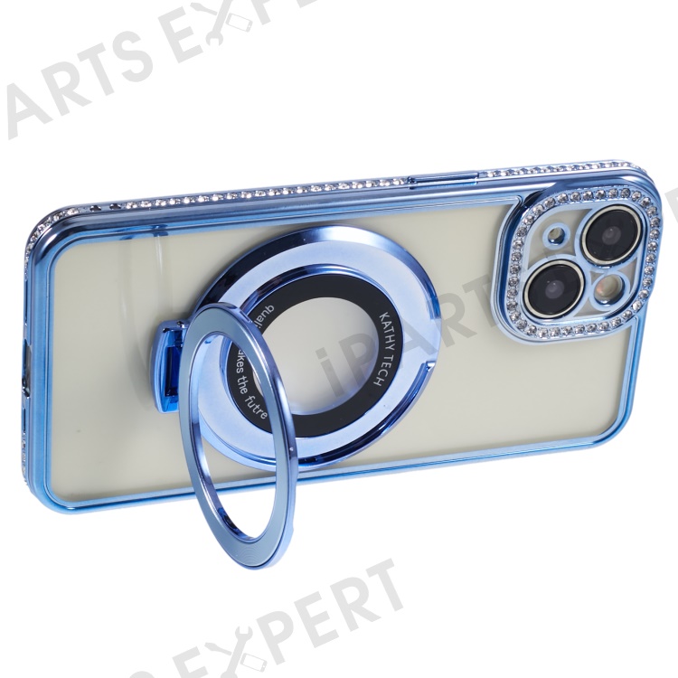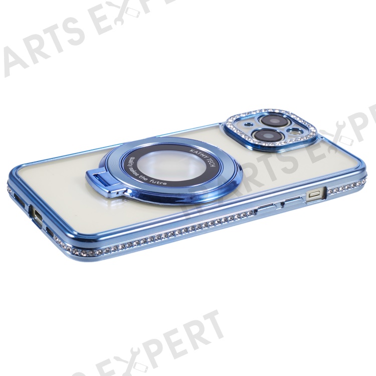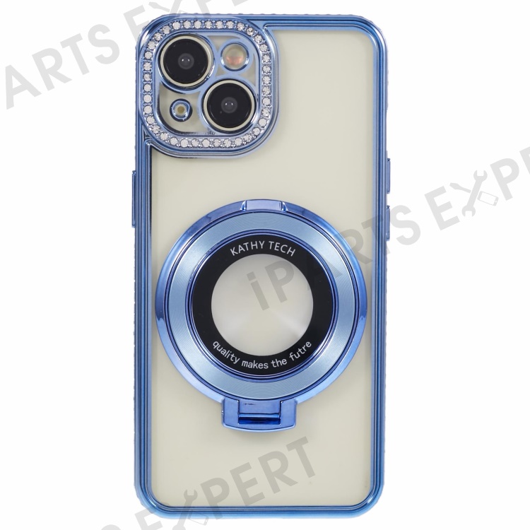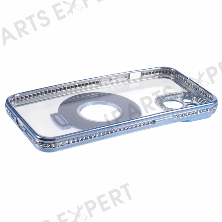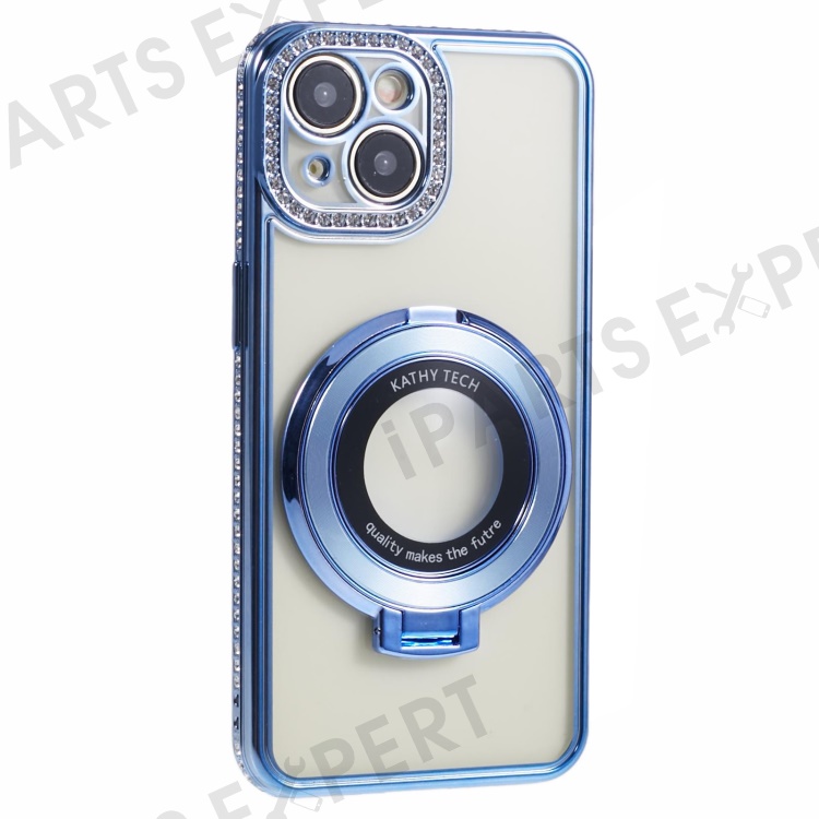 For iPhone 13 Case Flexible TPU Rhinestones Decor Protective Shell with PC Ring Kickstand - Blue