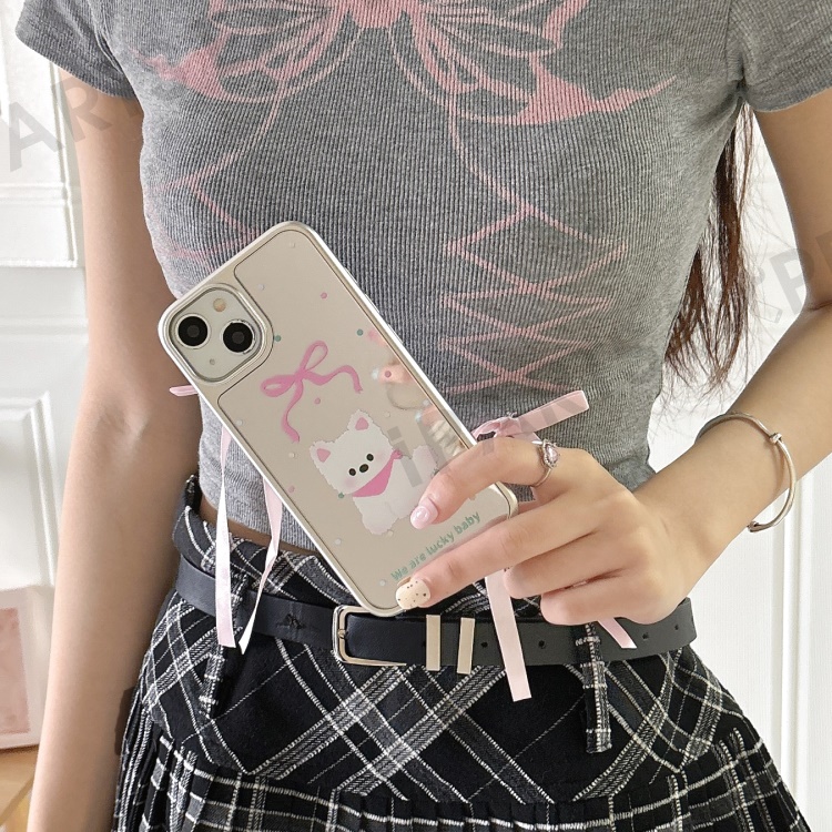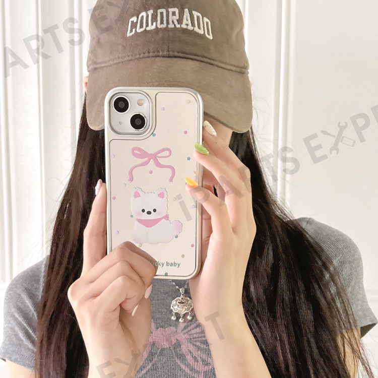 For iPhone 13 Case PC+TPU Phone Cover Silver Edge Pattern Design - Mirror Dog