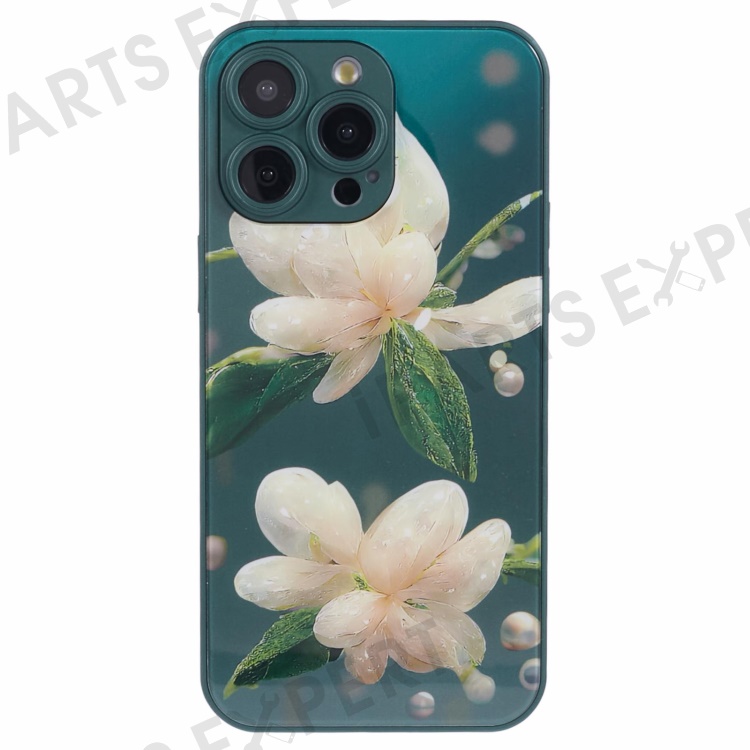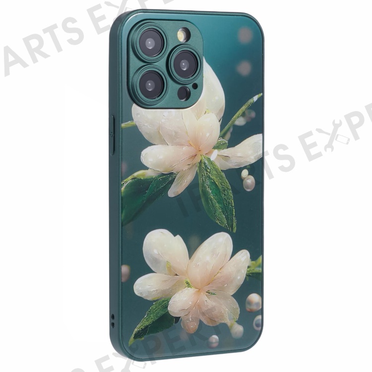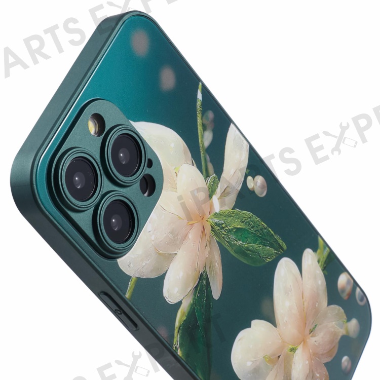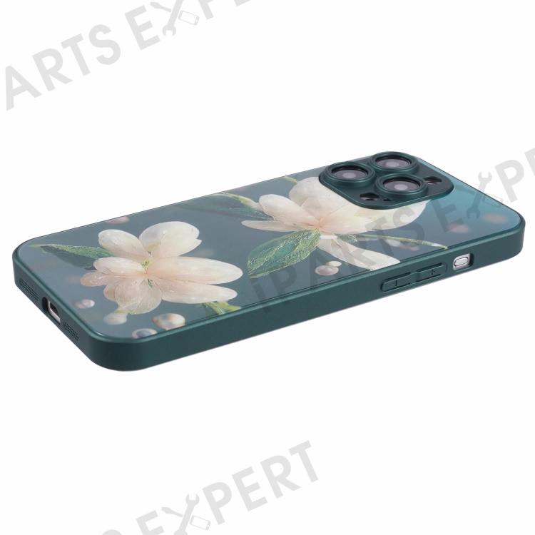 KYW Series for iPhone 13 Pro Case Camera Protection Flower Pattern Tempered Glass Phone Cover - Green / Jasmine