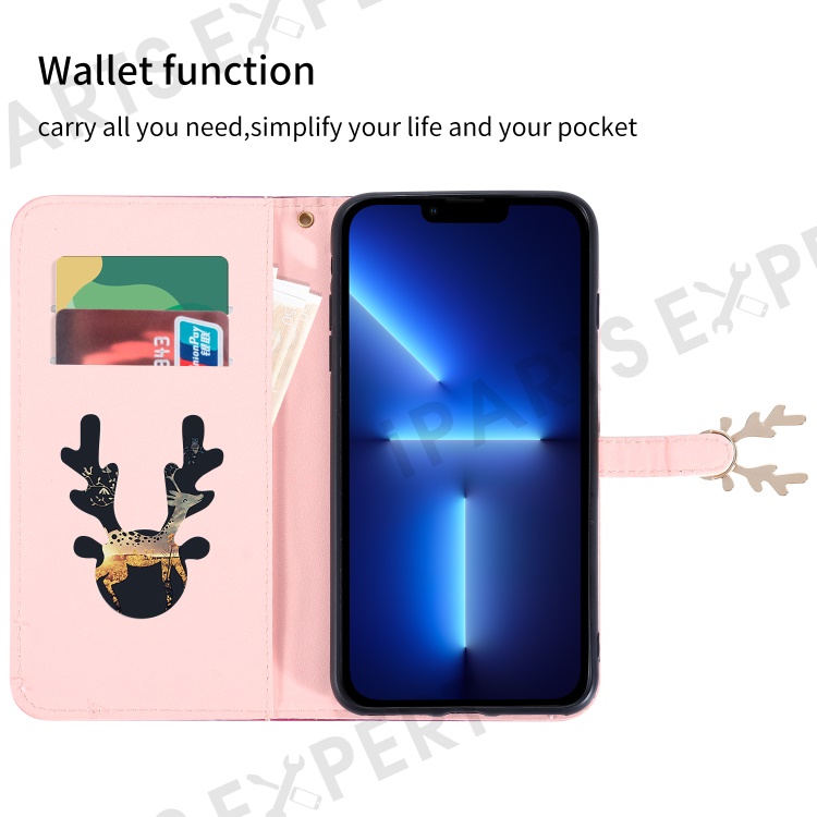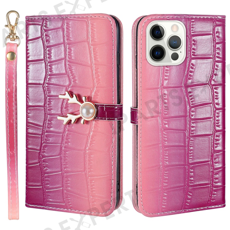 For iPhone 13 Pro Case Gradient Crocodile Texture Deer Decor Phone Cover - Pink