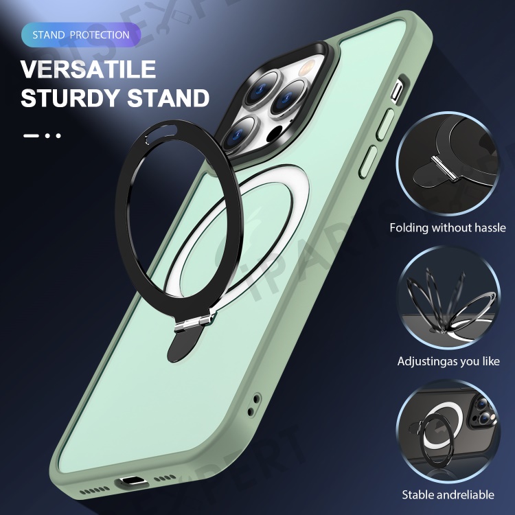 For iPhone 13 Pro Max 6.7 inch Magnetic Invisible Kickstand Phone Case PC+TPU Drop Protection Cover Compatible with MagSafe - Matcha Green