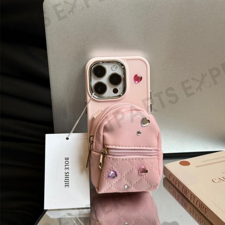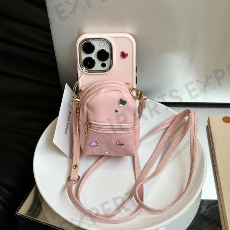 For iPhone 13 Pro Max 6.7 inch TPU Anti-drop Phone Case PU Leather Schoolbag Back Cover with Crossbody Strap - Pink