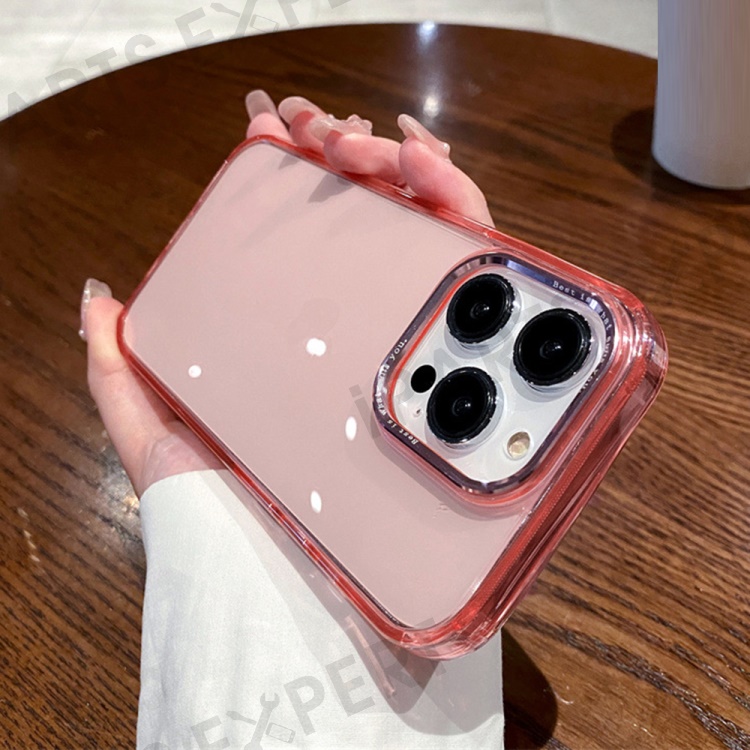 For iPhone 13 Pro Max Aluminium Alloy Lens Frame Anti-Scratch Cell Phone Case TPU+PC Clear Back Cover - Pink