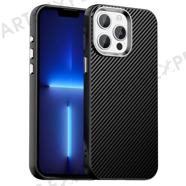 For iPhone 13 Pro Max Case Cell Phone Hybrid Back Cover Carbon Fiber Texture - Black