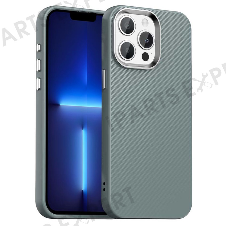 For iPhone 13 Pro Max Case Cell Phone Hybrid Back Cover Carbon Fiber Texture - Grey