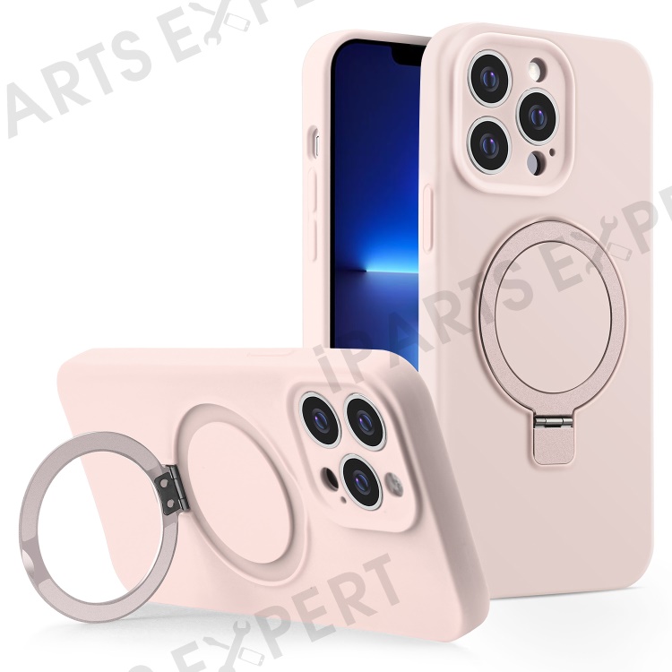 For iPhone 13 Pro Max Case Magnetic Kickstand Flexible Liquid Silicone Phone Cover - Pink