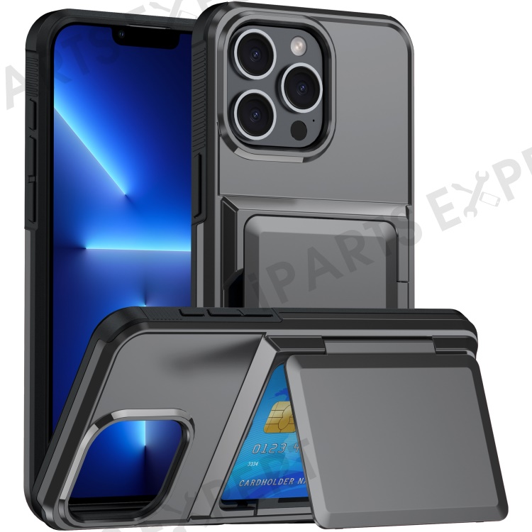 For iPhone 13 Pro Max Cases Card Slot TPU+PC Kickstand Phone Case - Grey