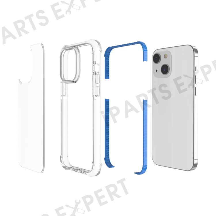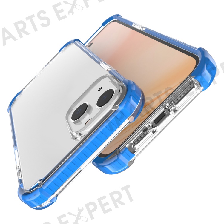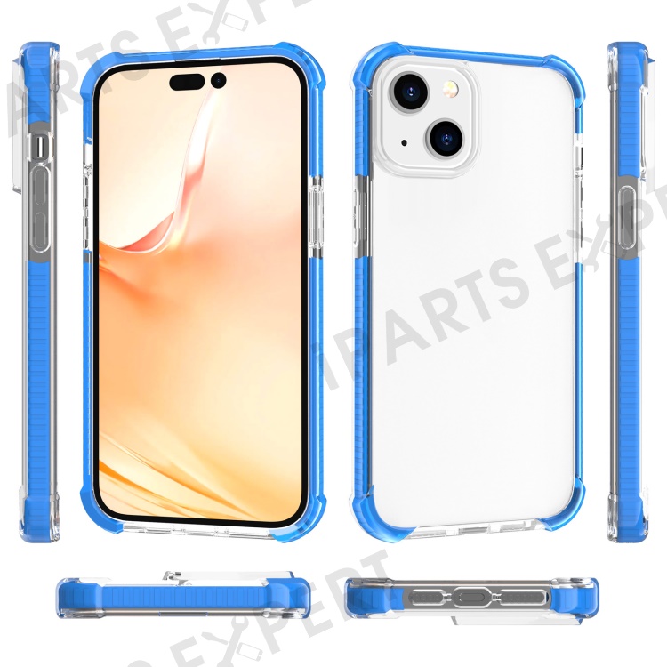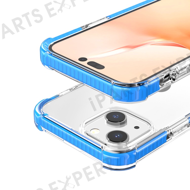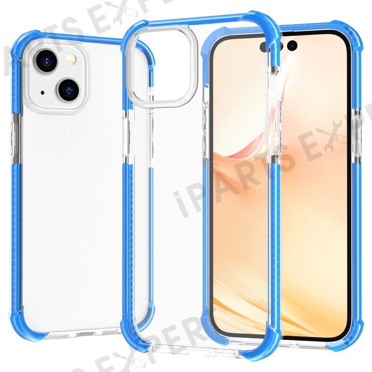 For iPhone 14 Case Four Corners Anti Drop Clear TPU + TPE + PC Phone Cover - Transparent Blue
