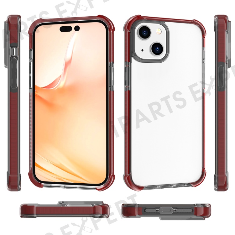 For iPhone 14 Case Four Corners Anti Drop Clear TPU + TPE + PC Phone Cover - Transparent Brown