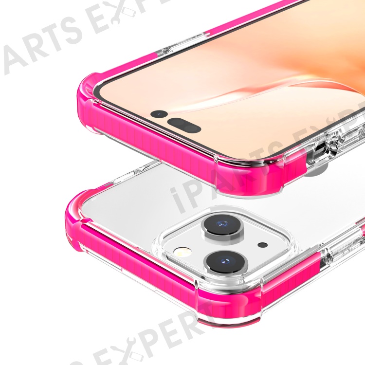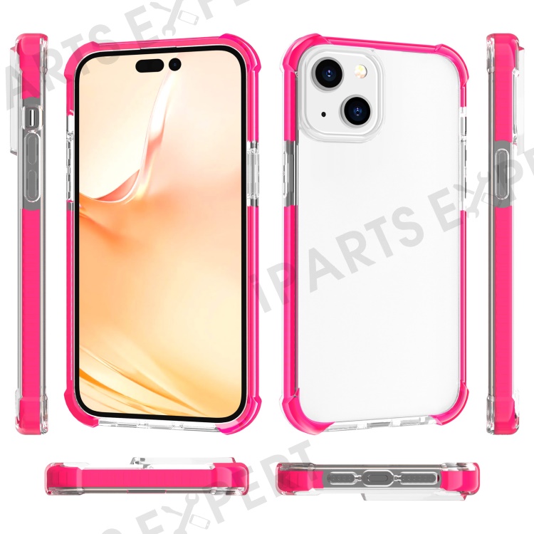 For iPhone 14 Case Four Corners Anti Drop Clear TPU + TPE + PC Phone Cover - Transparent Rose