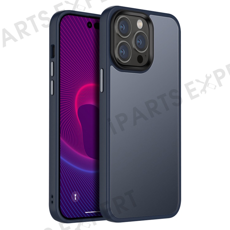 For iPhone 14 6.1 inch Anti-drop Matte Anti-fingerprint TPU+PC Phone Case Light Thin Lens Protection Back Cover - Dark Blue