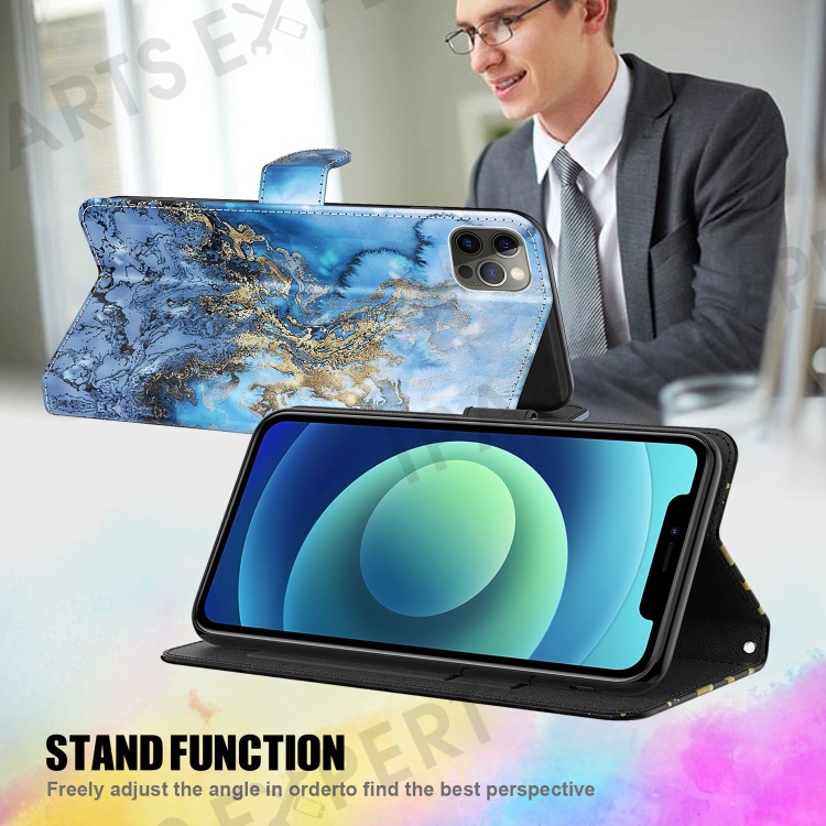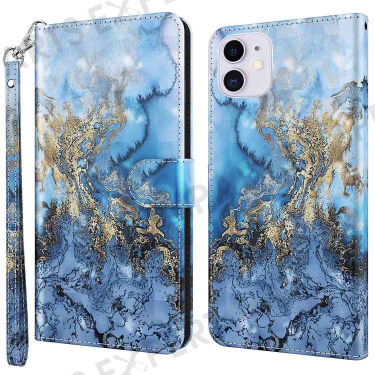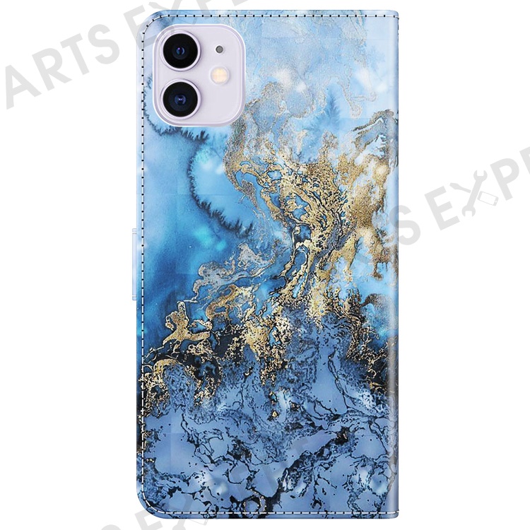 For iPhone 14 6.1 inch Shockproof PU Leather Phone Case Stand 3D Pattern Printed Magnet Closure Wallet Full Protection Phone Cover with Strap - Bauhinia Valley