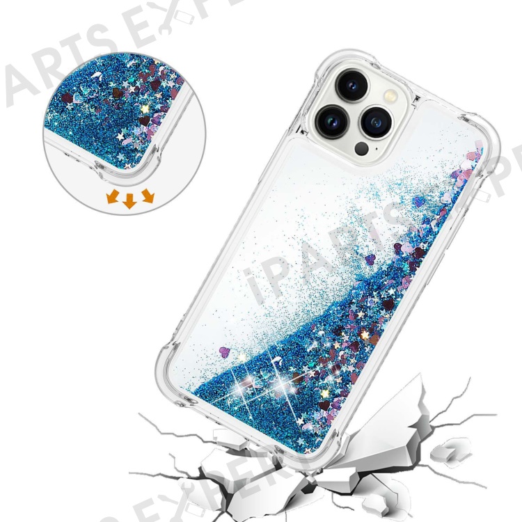 For iPhone 14 6.1 inch TPU+PC Phone Case Liquid Floating Glitter Quicksand Phone Cover - Pink / Stars